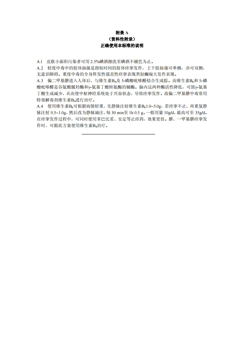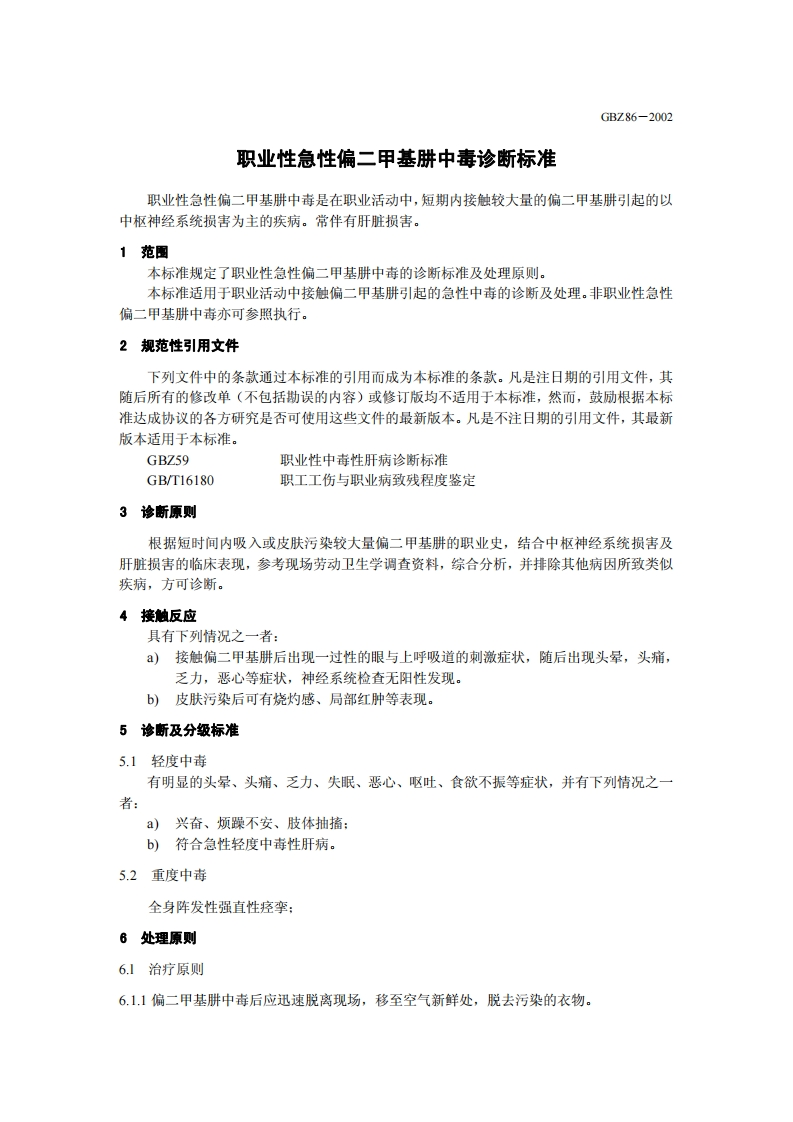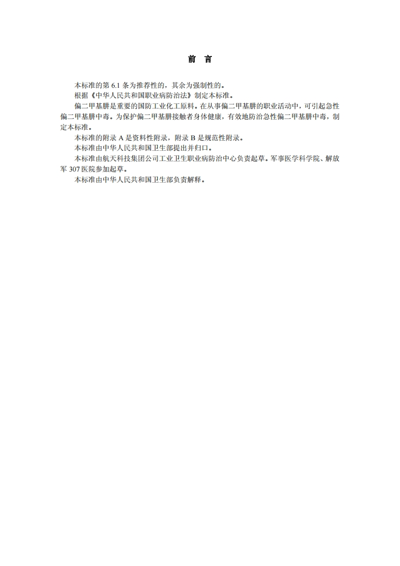 职业性急性偏二甲基肼中毒诊断标准DiagnosticCriteriaofOccupationalAcute11-DimethylhydrazinePoisoning348072@abc昨天发布关注私信0.16MB5页042职业性急性偏二甲基肼中毒诊断标准DiagnosticCriteriaofOccupationalAcute11-DimethylhydrazinePoisoning此内容为付费资源,请付费后查看¥13¥19黄金会员免费钻石会员免费立即购买您当前未登录!建议登陆后购买,可保存购买订单付费资源 第1页 / 共5页 第2页 / 共5页 第3页 / 共5页 第4页 / 共5页 第5页 / 共5页 已完成全部阅读,共5页 THE END标准规范 文本预览 1CS13.100c60GBZ中华人民共和国国家职业卫生标准GBZ86-2002职业性急性偏二甲基肼中毒诊断标准Diagnostic Criteria of Occupational Acute 1,1-Dimethylhydrazine Poisoning2002-04-08发布2002-06-01实施中华人民共和国卫生部发布 查看更多 收起部分 喜欢就支持一下吧收藏