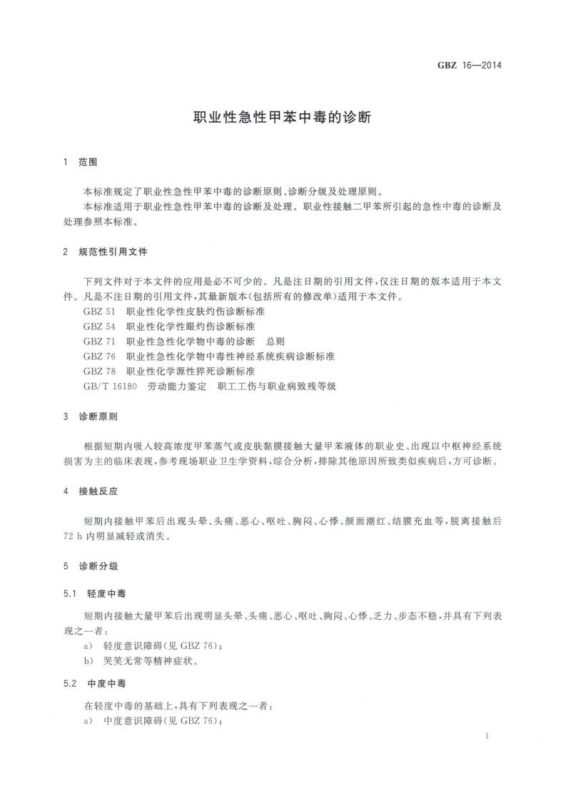职业性急性甲苯中毒的诊断Diagnosisofoccupationalacutetoluenepoisoning348072@abc10小时前发布关注私信1.65MB5页046职业性急性甲苯中毒的诊断Diagnosisofoccupationalacutetoluenepoisoning此内容为付费资源,请付费后查看¥13¥19黄金会员免费钻石会员免费立即购买您当前未登录!建议登陆后购买,可保存购买订单付费资源 第1页 / 共5页 第2页 / 共5页 第3页 / 共5页 第4页 / 共5页 第5页 / 共5页 已完成全部阅读,共5页 THE END标准规范 文本预览 ICS13.100C60GBZ中华人民共和国国家职业卫生标准GBZ16-2014代替GBZ16-2002职业性急性甲苯中毒的诊断Diagnosis of occupational acute toluene poisoning2014-10-13发布2015-03-01实施中华人民共和国国家卫生和计划生育委员会发布 查看更多 收起部分 喜欢就支持一下吧收藏