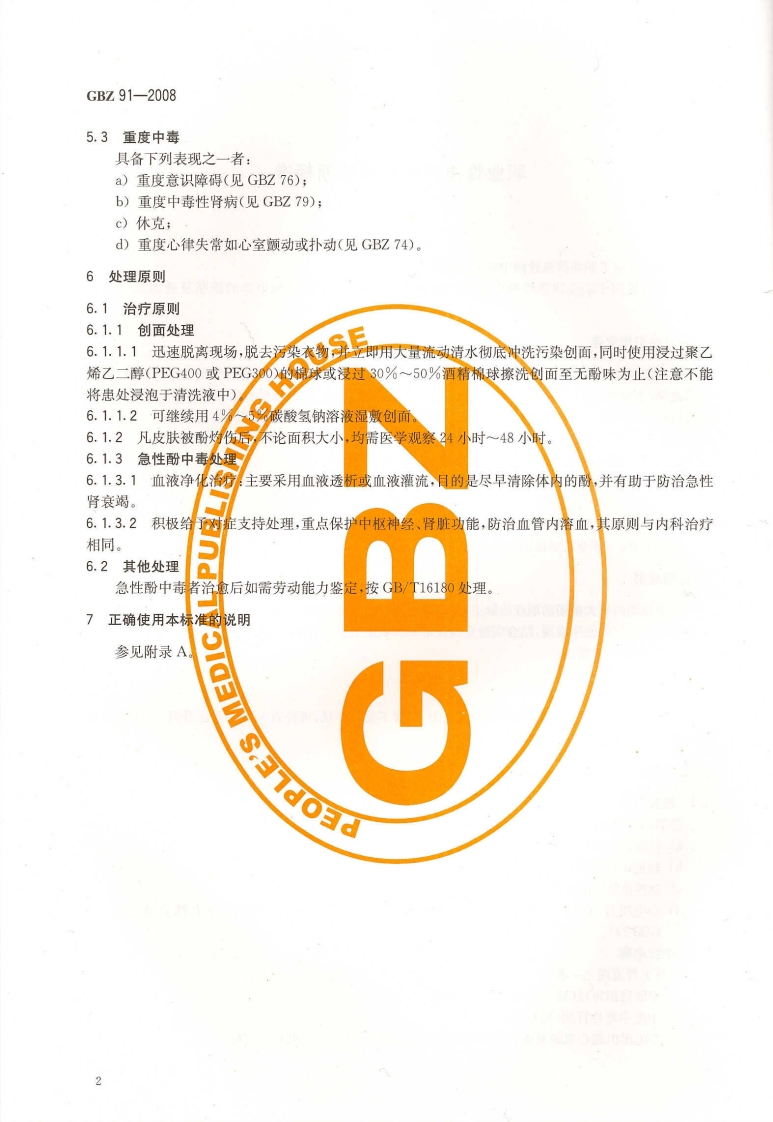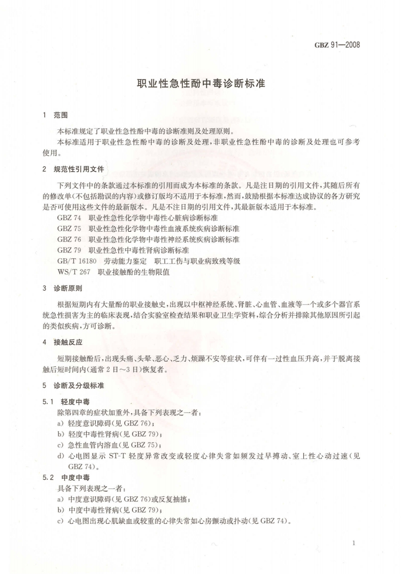 职业性急性酚中毒诊断标准Diagnosticcriteriaofoccupationalacutephenolpoisoning348072@abc昨天发布关注私信1.26MB6页045职业性急性酚中毒诊断标准Diagnosticcriteriaofoccupationalacutephenolpoisoning此内容为付费资源,请付费后查看¥13¥19黄金会员免费钻石会员免费立即购买您当前未登录!建议登陆后购买,可保存购买订单付费资源 第1页 / 共6页 第2页 / 共6页 第3页 / 共6页 第4页 / 共6页 第5页 / 共6页 试读已结束,还剩1页,您可下载完整版后进行离线阅读 THE END标准规范 文本预览 ICs13.100C60GBZ中华人民共和国国家职业卫生标准GBZ91-2008代替GBZ91一2002职业性急性酚中毒诊断标准Diagnostic criteria of occupational acute phenol poisoning2008-06-06发布2008-12-01实施@人男碧盛触P M PH中华人民共和国卫生邻发布a 查看更多 收起部分 喜欢就支持一下吧收藏