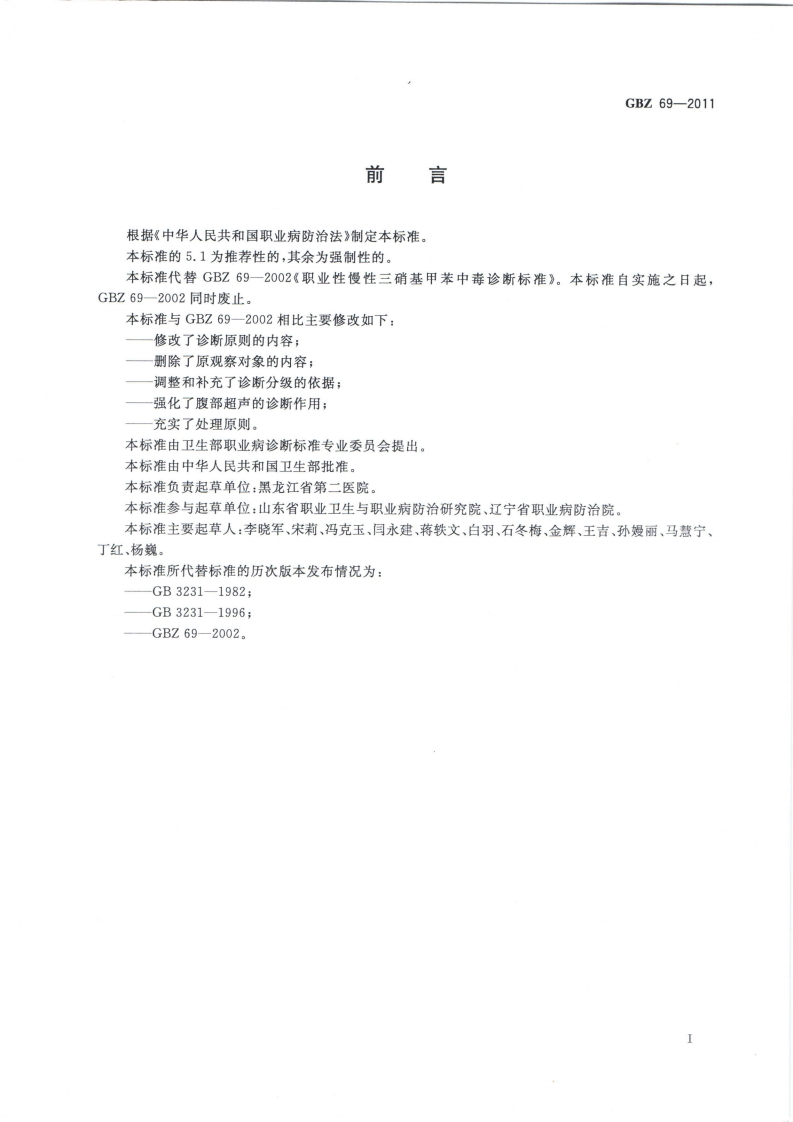 职业性慢性三硝基甲苯中毒的诊断Diagnosisofoccupationalchronictrinitrotoluenepoisoning348072@abc昨天发布关注私信2.92MB7页027职业性慢性三硝基甲苯中毒的诊断Diagnosisofoccupationalchronictrinitrotoluenepoisoning此内容为付费资源,请付费后查看¥13¥19黄金会员免费钻石会员免费立即购买您当前未登录!建议登陆后购买,可保存购买订单付费资源 第1页 / 共7页 第2页 / 共7页 第3页 / 共7页 第4页 / 共7页 第5页 / 共7页 试读已结束,还剩2页,您可下载完整版后进行离线阅读 THE END标准规范 文本预览 ICS13.100C60HBZ中华人民共和国国家职业卫生标准GBZ69-2011代替GBZ69一2002职业性慢性三硝基甲苯中毒的诊断Diagnosis of occupational chronic trinitrotoluene poisoning2011-04-13发布2011-10-01实施中华人民共和国卫生部发布码防伪 查看更多 收起部分 喜欢就支持一下吧收藏