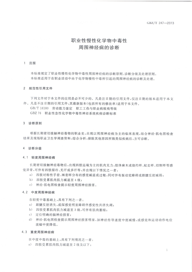 职业性慢性化学物中毒性周围神经病的诊断Diagnosisofoccupationalchronictoxicperipheralneuropathycausedbychemicals348072@abc昨天发布关注私信3.97MB10页035职业性慢性化学物中毒性周围神经病的诊断Diagnosisofoccupationalchronictoxicperipheralneuropathycausedbychemicals此内容为付费资源,请付费后查看¥13¥19黄金会员免费钻石会员免费立即购买您当前未登录!建议登陆后购买,可保存购买订单付费资源 第1页 / 共10页 第2页 / 共10页 第3页 / 共10页 第4页 / 共10页 第5页 / 共10页 试读已结束,还剩5页,您可下载完整版后进行离线阅读 THE END标准规范 文本预览 ICS13.100C60GBZ中华人民共和国国家职业卫生标准GBZ/T247-2013职业性慢性化学物中毒性周围神经病的诊断Diagnosis of occupational chronic toxic peripheralneuropathy caused by chemicals2013-02-07发布2013-08-01实施中华人民共和国卫生邵发布 查看更多 收起部分 喜欢就支持一下吧收藏