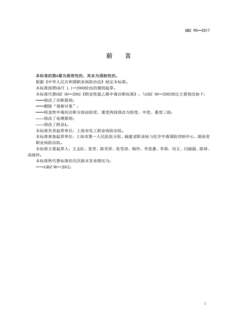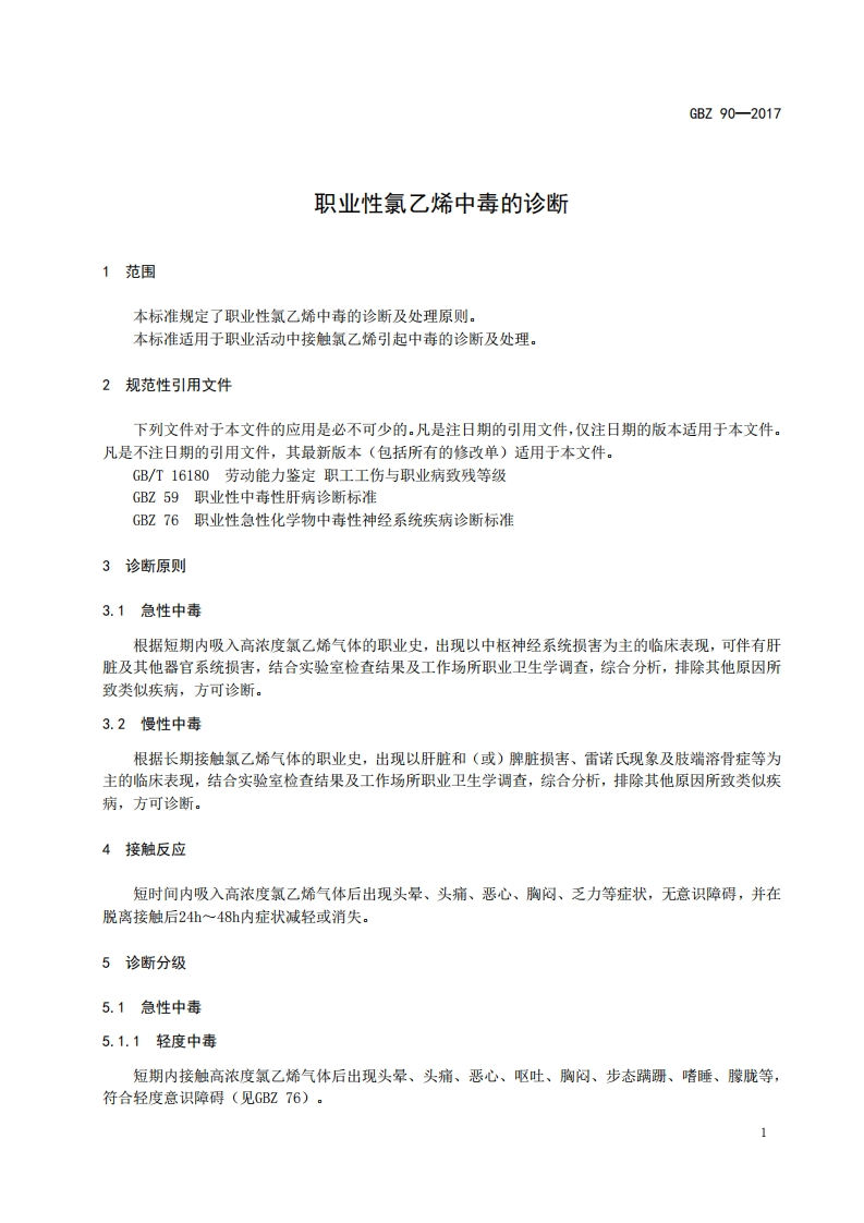 职业性氯乙烯中毒的诊断Diagnosisofoccupationalvinylchloridepoisoning348072@abc前天发布关注私信0.25MB7页020职业性氯乙烯中毒的诊断Diagnosisofoccupationalvinylchloridepoisoning此内容为付费资源,请付费后查看¥13¥19黄金会员免费钻石会员免费立即购买您当前未登录!建议登陆后购买,可保存购买订单付费资源 第1页 / 共7页 第2页 / 共7页 第3页 / 共7页 第4页 / 共7页 第5页 / 共7页 试读已结束,还剩2页,您可下载完整版后进行离线阅读 THE END标准规范 文本预览 ICS13.100C60GBZ中华人民共和国国家积业卫生标准GBZ90-2017代替GBZ90一2002职业性氯乙烯中毒的诊断Diagnosis of occupational vinyl chloride poisoning2017-05-18发布2017-11-01实施中华人民共和国国家卫生和计划生育委员会发布 查看更多 收起部分 喜欢就支持一下吧收藏