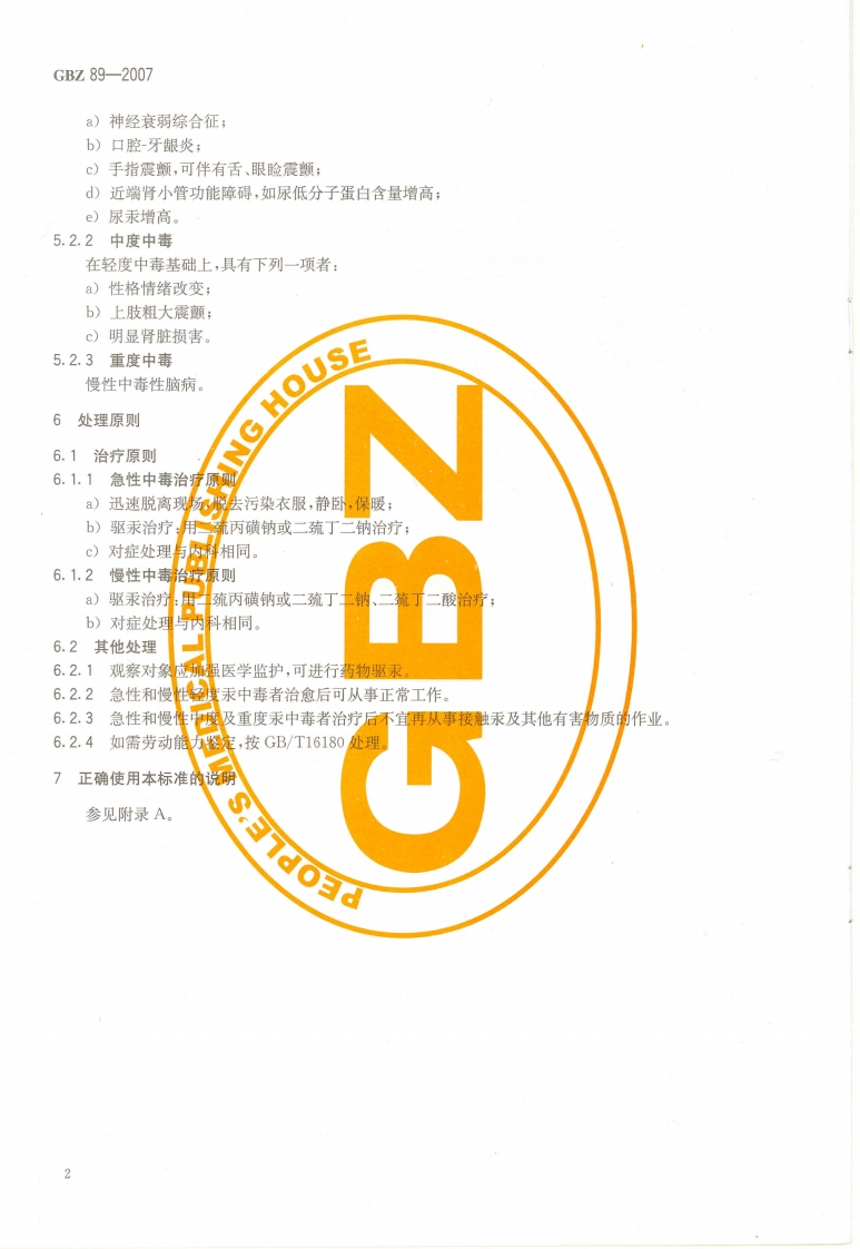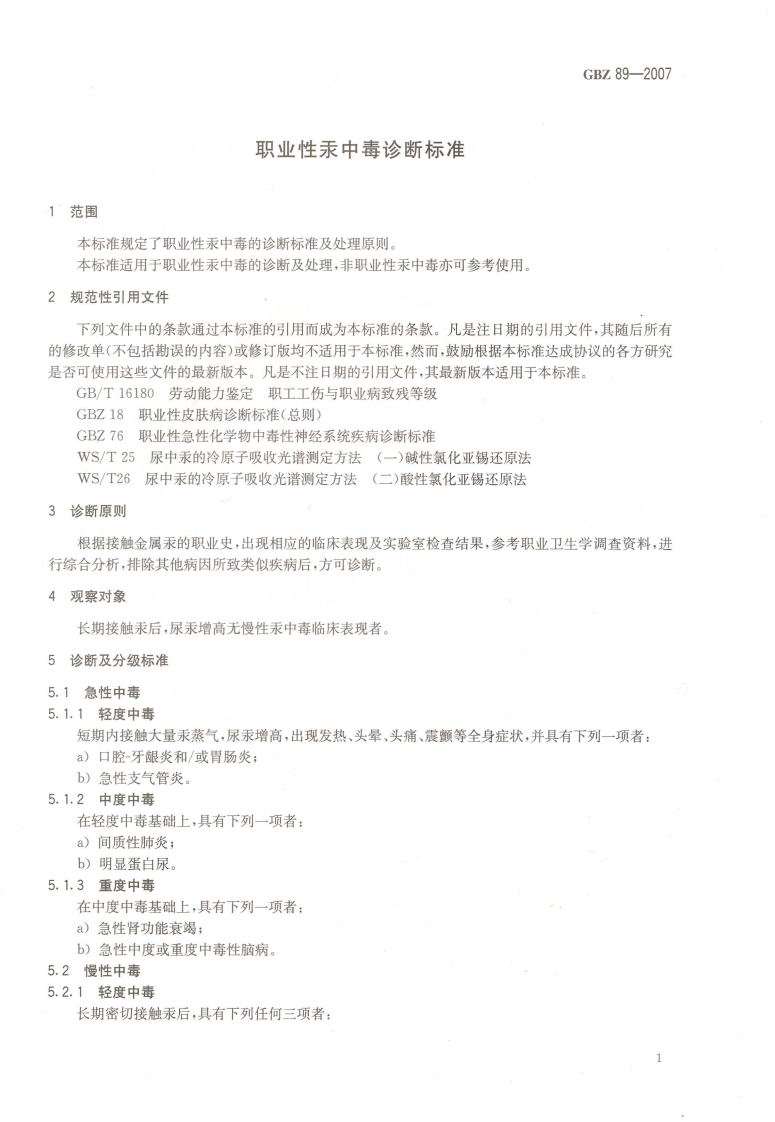 职业性汞中毒诊断标准Diagnosticcriteriaofoccupationalmercurypoisoning348072@abc前天发布关注私信2.33MB6页022职业性汞中毒诊断标准Diagnosticcriteriaofoccupationalmercurypoisoning此内容为付费资源,请付费后查看¥13¥19黄金会员免费钻石会员免费立即购买您当前未登录!建议登陆后购买,可保存购买订单付费资源 第1页 / 共6页 第2页 / 共6页 第3页 / 共6页 第4页 / 共6页 第5页 / 共6页 试读已结束,还剩1页,您可下载完整版后进行离线阅读 THE END标准规范 文本预览 Ics13.100c60GBZ中华人民共和国国家积业卫生标准GBZ89-2007代替GBZ89-2002职业性汞中毒诊断标准Diagnostic criteria of occupational mercury poisoning2007-06-13发布2007-11-30实施@人风三生禁油中华人民共和国卫生邵发布P M P H酒家发 查看更多 收起部分 喜欢就支持一下吧收藏