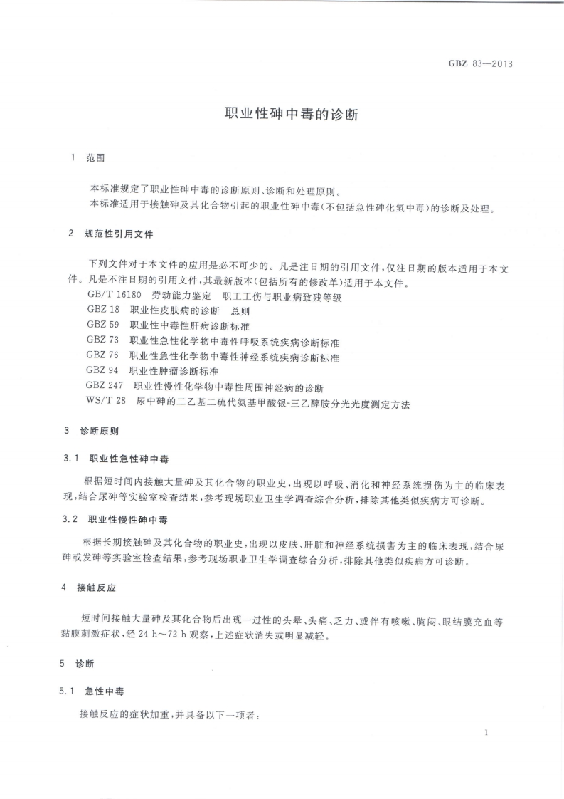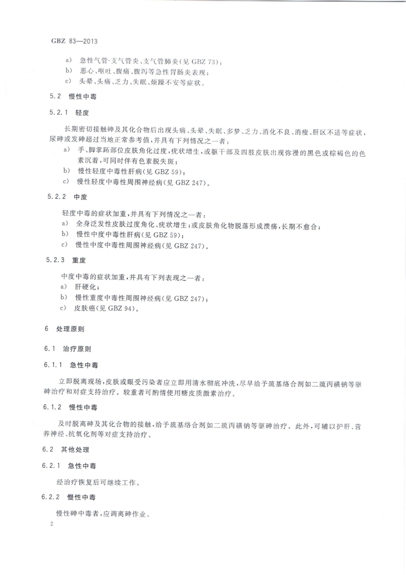 职业性砷中毒的诊断Diagnosisofoccupationalarsenicpoisoning348072@abc3天前发布关注私信2.08MB6页041职业性砷中毒的诊断Diagnosisofoccupationalarsenicpoisoning此内容为付费资源,请付费后查看¥13¥19黄金会员免费钻石会员免费立即购买您当前未登录!建议登陆后购买,可保存购买订单付费资源 第1页 / 共6页 第2页 / 共6页 第3页 / 共6页 第4页 / 共6页 第5页 / 共6页 试读已结束,还剩1页,您可下载完整版后进行离线阅读 THE END标准规范 文本预览 1CS13.100C60B☑中华人民共和国国家职业卫生标准GBZ83-2013代替GBZ83-2002职业性砷中毒的诊断Diagnosis of occupational arsenic poisoning2013-02-07发布2013-08-01实施中华人民共和国卫生部发布 查看更多 收起部分 喜欢就支持一下吧收藏