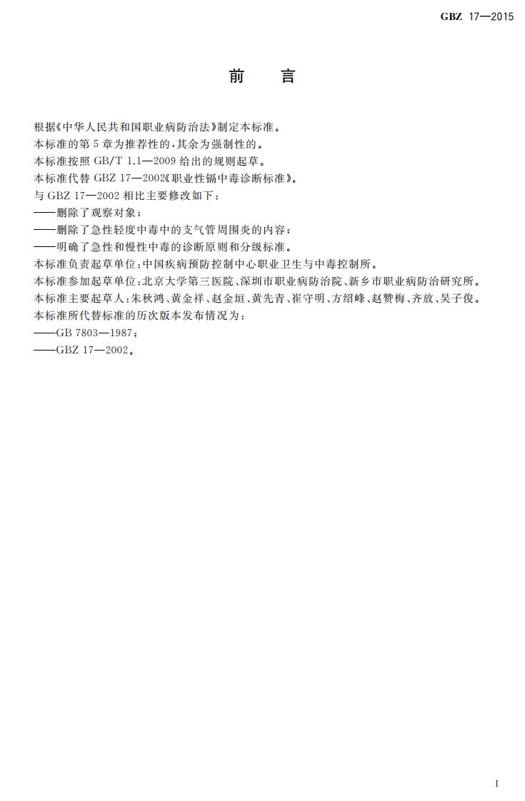 职业性镉中毒的诊断Diagnosisofoccupationalcadmiumpoisoning348072@abc4天前发布关注私信0.35MB5页032职业性镉中毒的诊断Diagnosisofoccupationalcadmiumpoisoning此内容为付费资源,请付费后查看¥13¥19黄金会员免费钻石会员免费立即购买您当前未登录!建议登陆后购买,可保存购买订单付费资源 第1页 / 共5页 第2页 / 共5页 第3页 / 共5页 第4页 / 共5页 第5页 / 共5页 已完成全部阅读,共5页 THE END标准规范 文本预览 1CS13.100C60G82中华人民共和国国家职业卫生标准GBZ17-2015代替GBZ17-2002职业性镉中毒的诊断Diagnosis of occupational cadmium poisoning2015-12-15发布2016-05-01实施中华人民共和国国家卫生和计划生育委员会发布 查看更多 收起部分 喜欢就支持一下吧收藏