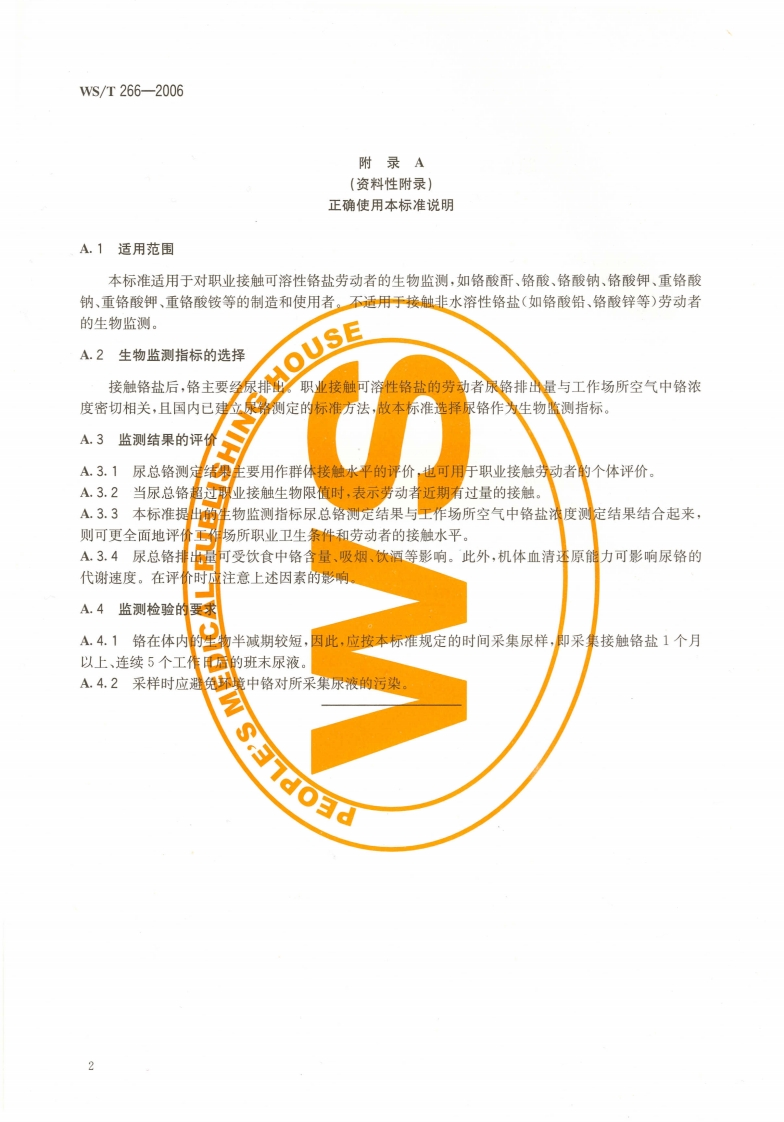 职业接触可溶性铬盐的生物限值Biologicallimitvalueforoccupationalexposuretosolublechromate348072@abc4天前发布关注私信1.72MB5页038职业接触可溶性铬盐的生物限值Biologicallimitvalueforoccupationalexposuretosolublechromate此内容为付费资源,请付费后查看¥13¥19黄金会员免费钻石会员免费立即购买您当前未登录!建议登陆后购买,可保存购买订单付费资源 第1页 / 共5页 第2页 / 共5页 第3页 / 共5页 第4页 / 共5页 第5页 / 共5页 已完成全部阅读,共5页 THE END标准规范 文本预览 ICs13.100c5219533-2007WS中华人民共和国卫生行业标准WS/T266-2006职业接触可溶性铬盐的生物限值Biological limit value for occupational exposure to soluble chromate2007-01-04发布2007-07-01实施人氏E生齿P M P H中华人民共和国卫生部发布 查看更多 收起部分 喜欢就支持一下吧收藏