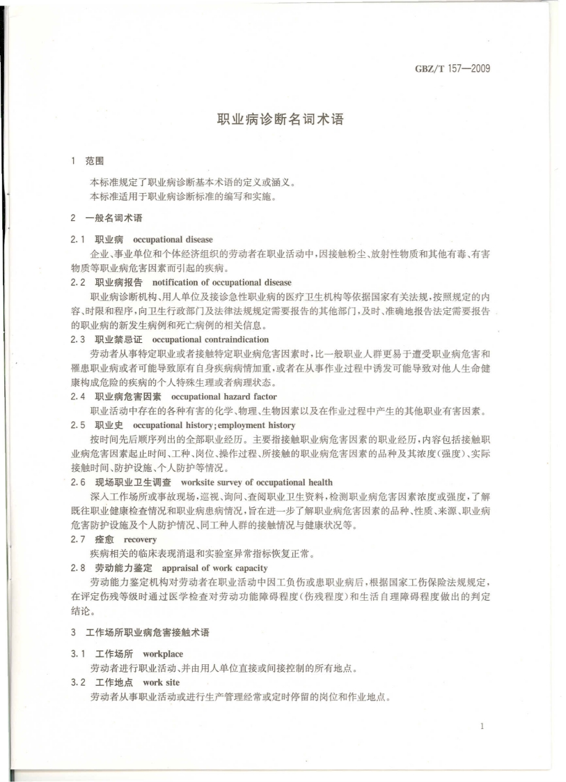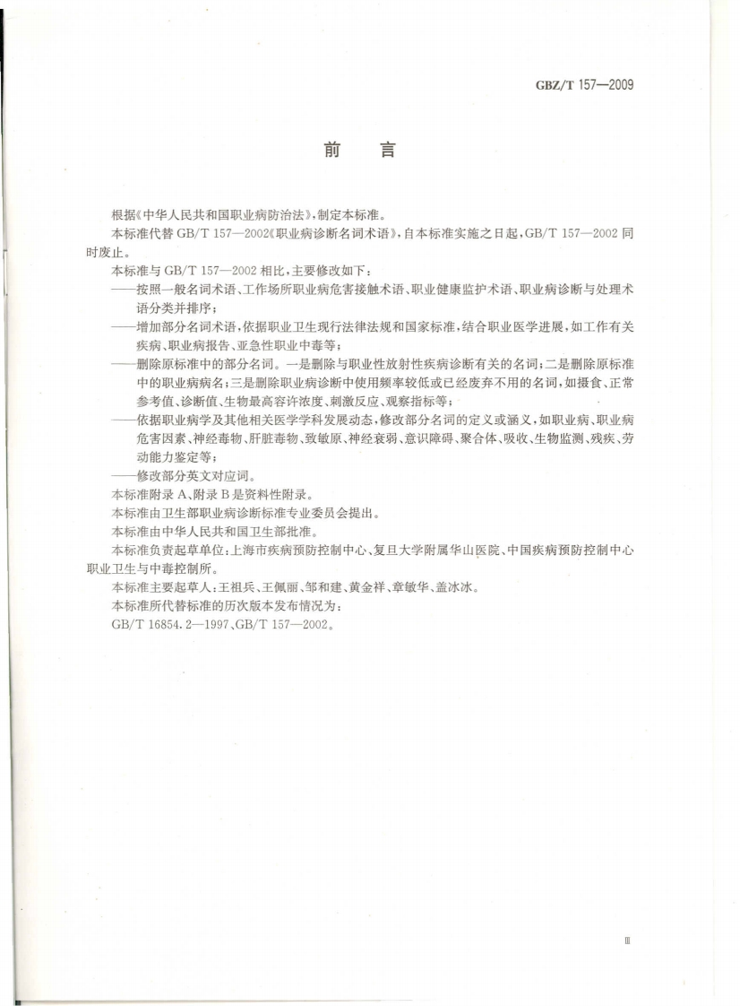 职业病诊断名词术语Termsofdiagnosisofoccupationaldisease348072@abc4天前发布关注私信4.55MB18页034职业病诊断名词术语Termsofdiagnosisofoccupationaldisease此内容为付费资源,请付费后查看¥13¥19黄金会员免费钻石会员免费立即购买您当前未登录!建议登陆后购买,可保存购买订单付费资源 第1页 / 共18页 第2页 / 共18页 第3页 / 共18页 第4页 / 共18页 第5页 / 共18页 试读已结束,还剩13页,您可下载完整版后进行离线阅读 THE END标准规范 文本预览 1Cs13.100c60GBZ中华人民共和国国家职业卫生标准GBZ/T157-2009代替GBZ/T157一2002职业病诊断名词术语Terms of diagnosis of occupational disease2009-03-16发布2009-11-01实施人k黑米忠良热P M P H中华人民共和国卫生邵发布的水打因 查看更多 收起部分 喜欢就支持一下吧收藏