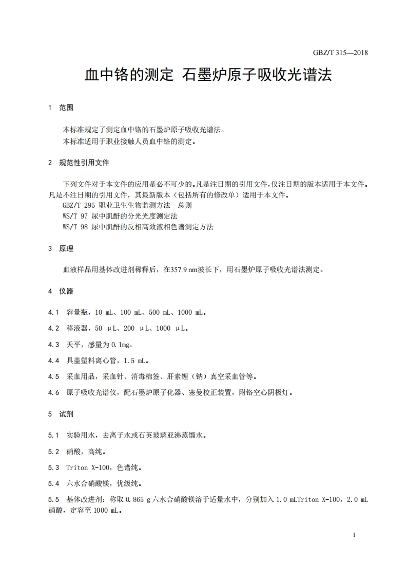 血中铬的测定石墨炉原子吸收光谱法DeterminationofchromiuminbloodGraphitefurnaceatomicabsorptionspectrometricmethod348072@abc5天前发布关注私信0.36MB7页039血中铬的测定石墨炉原子吸收光谱法DeterminationofchromiuminbloodGraphitefurnaceatomicabsorptionspectrometricmethod此内容为付费资源,请付费后查看¥13¥19黄金会员免费钻石会员免费立即购买您当前未登录!建议登陆后购买,可保存购买订单付费资源 第1页 / 共7页 第2页 / 共7页 第3页 / 共7页 第4页 / 共7页 第5页 / 共7页 试读已结束,还剩2页,您可下载完整版后进行离线阅读 THE END标准规范 文本预览 CS13.100C52FBZ中华人民共和国国家职业卫生标准GBZ/T315-2018代替WS/T38-1996血中铬的测定石墨炉原子吸收光谱法Determination of chromium in blood-Graphite furnace atomic absorption spectrometric method2018-08-16发布2019-01-01实施中华人民共和国国家卫生健康委员会发布 查看更多 收起部分 喜欢就支持一下吧收藏
