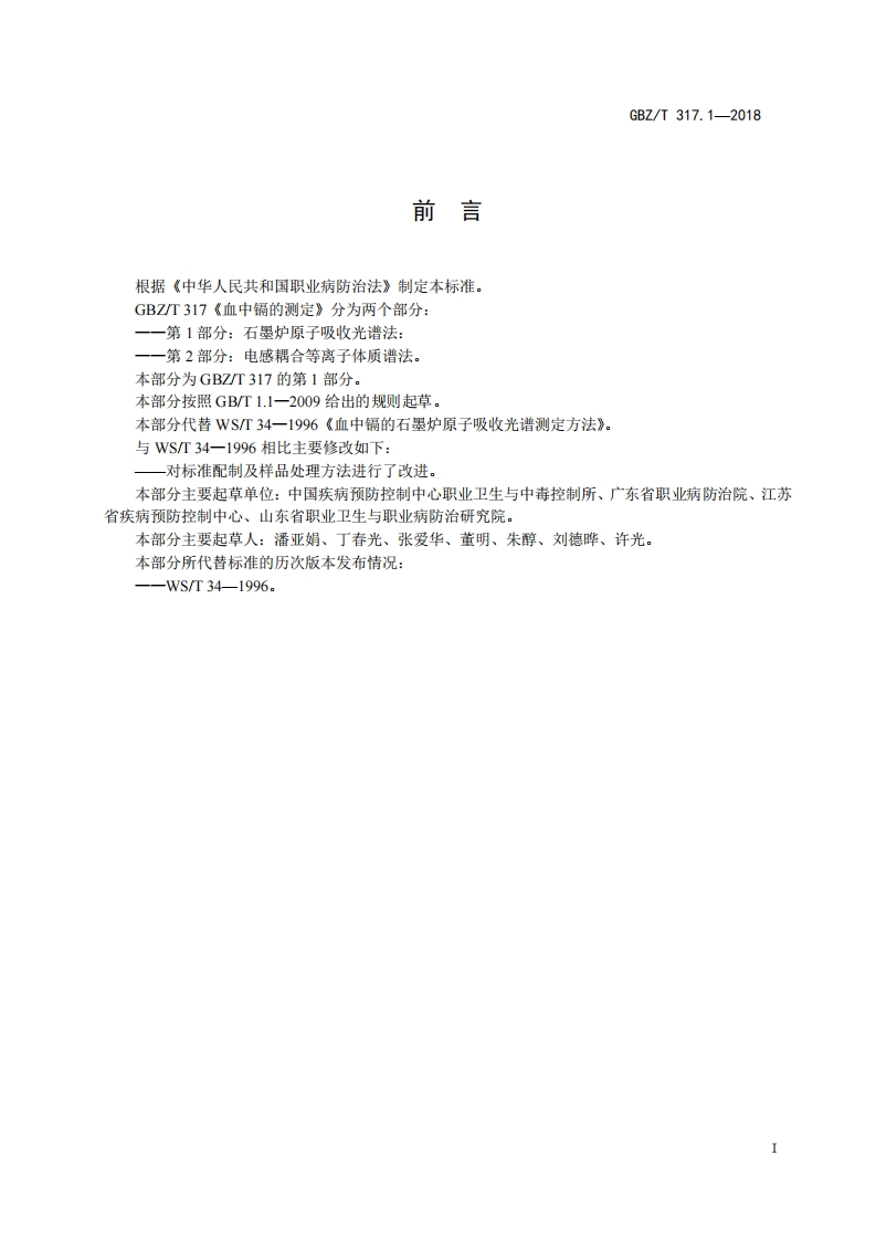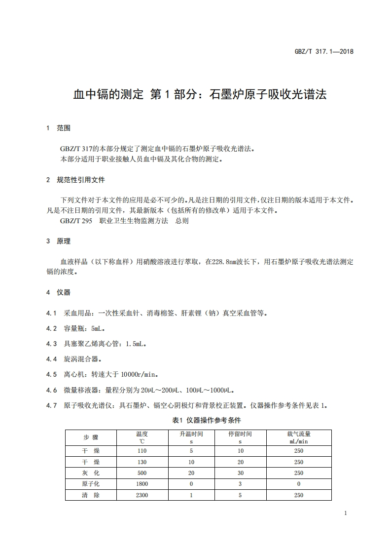 ICS13.100C52B☑中华人民共和国国家职业卫生标准GBZ/T317.1-2018代替WS/T34一1996血中镉的测定第1部分:石墨炉原子吸收光谱法Determination of cadmium in blood-Part 1:Graphite furnace atomic absorption spectrometry method2018-08-16发布2019-01-01实施中华人民共和国国家卫生健康委员会发布