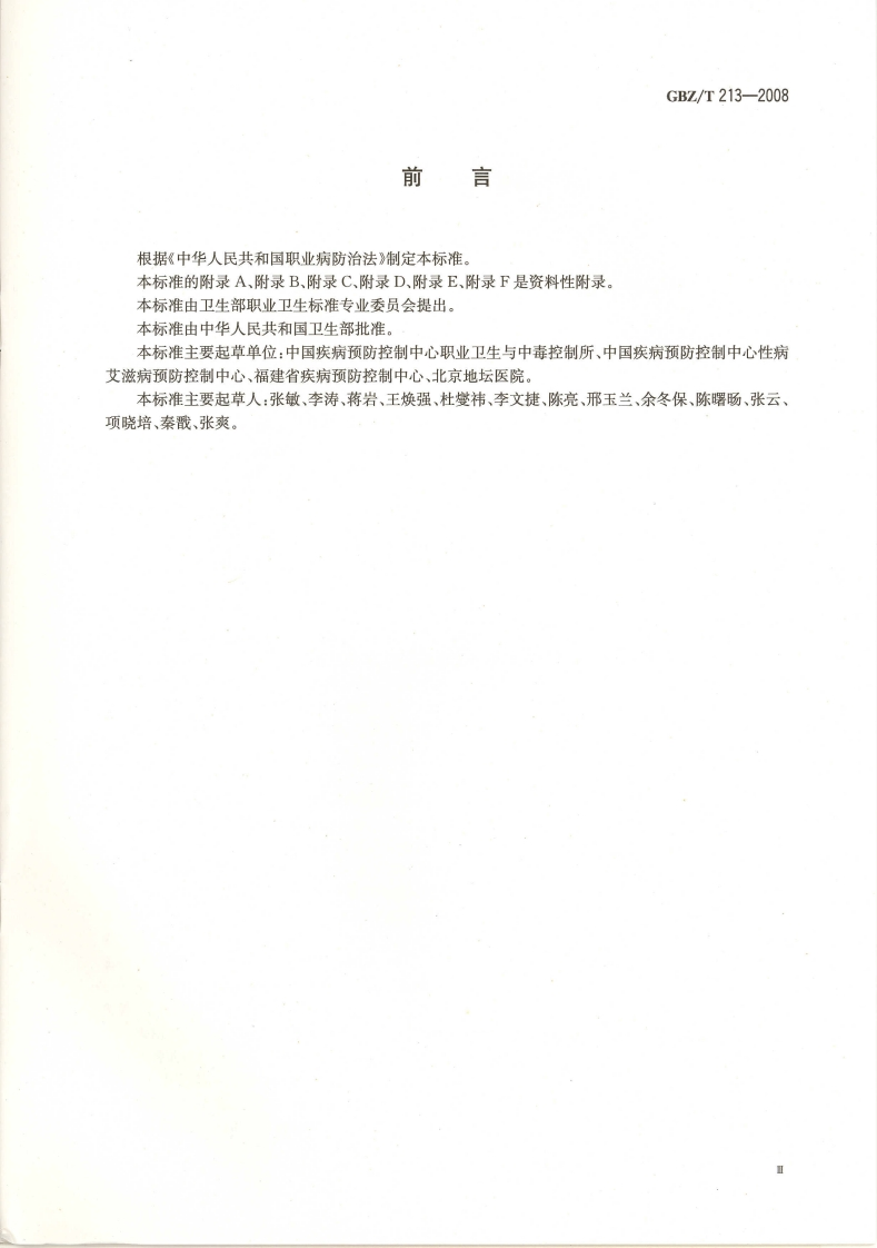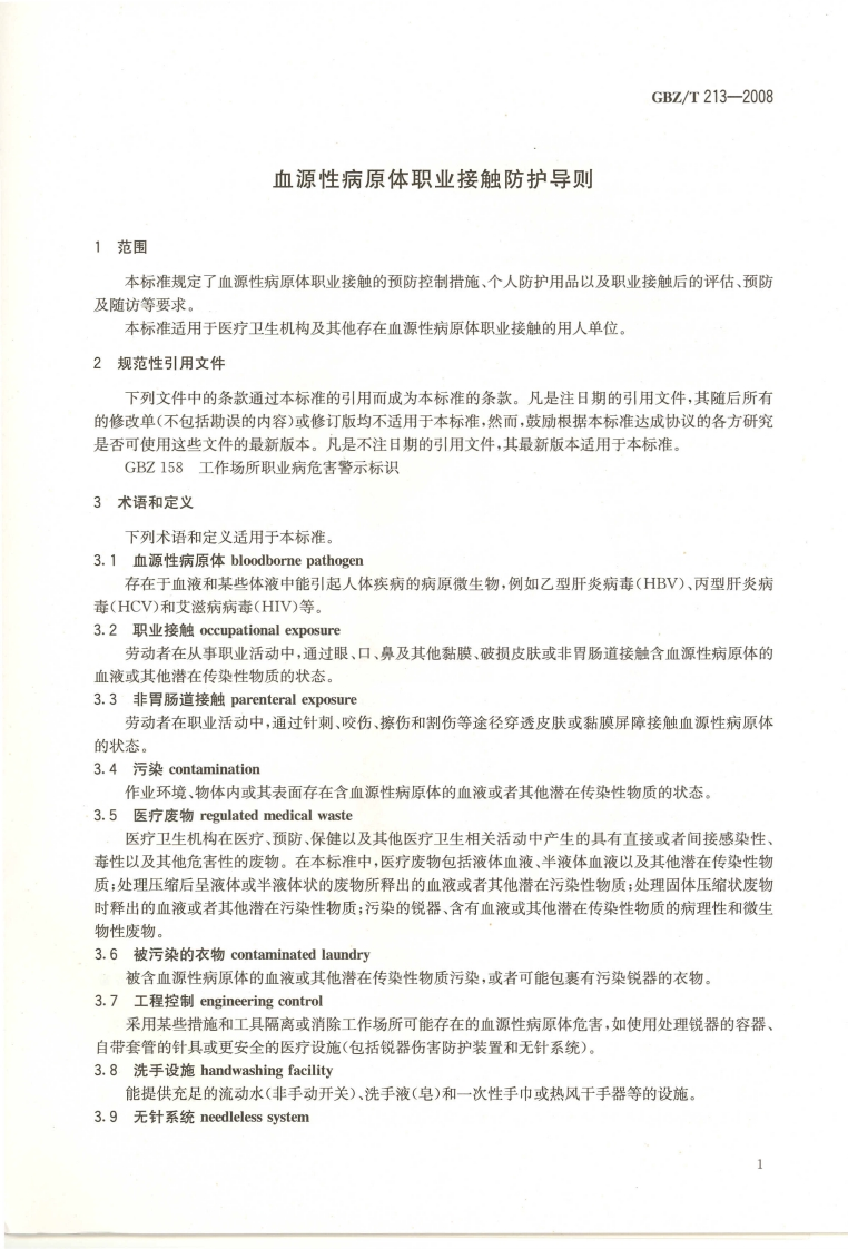 血源性病原体职业接触防护导则Guidelineforpreventionandcontrolforoccupationalexposuretobloodbornepathogen348072@abc15天前发布关注私信14.06MB26页037血源性病原体职业接触防护导则Guidelineforpreventionandcontrolforoccupationalexposuretobloodbornepathogen此内容为付费资源,请付费后查看¥13¥19黄金会员免费钻石会员免费立即购买您当前未登录!建议登陆后购买,可保存购买订单付费资源 第1页 / 共26页 第2页 / 共26页 第3页 / 共26页 第4页 / 共26页 第5页 / 共26页 试读已结束,还剩21页,您可下载完整版后进行离线阅读 THE END标准规范 文本预览 ICs13.100c52GBZ中华人民共和国国家职业卫生标准GBZ/T213-2008血源性病原体职业接触防护导则Guideline for prevention and control for occupational exposure tobloodborne pathogen2009-03-02发布2009-09-01实施人氏巴生共旅出中华人民共和国卫生邵发布P MP H水医 查看更多 收起部分 喜欢就支持一下吧收藏