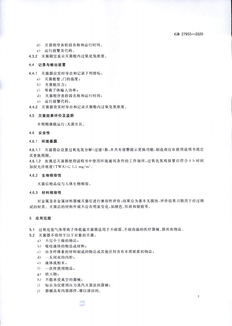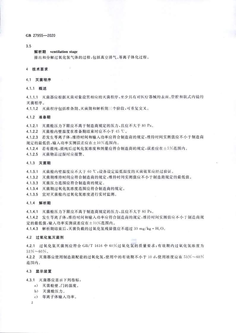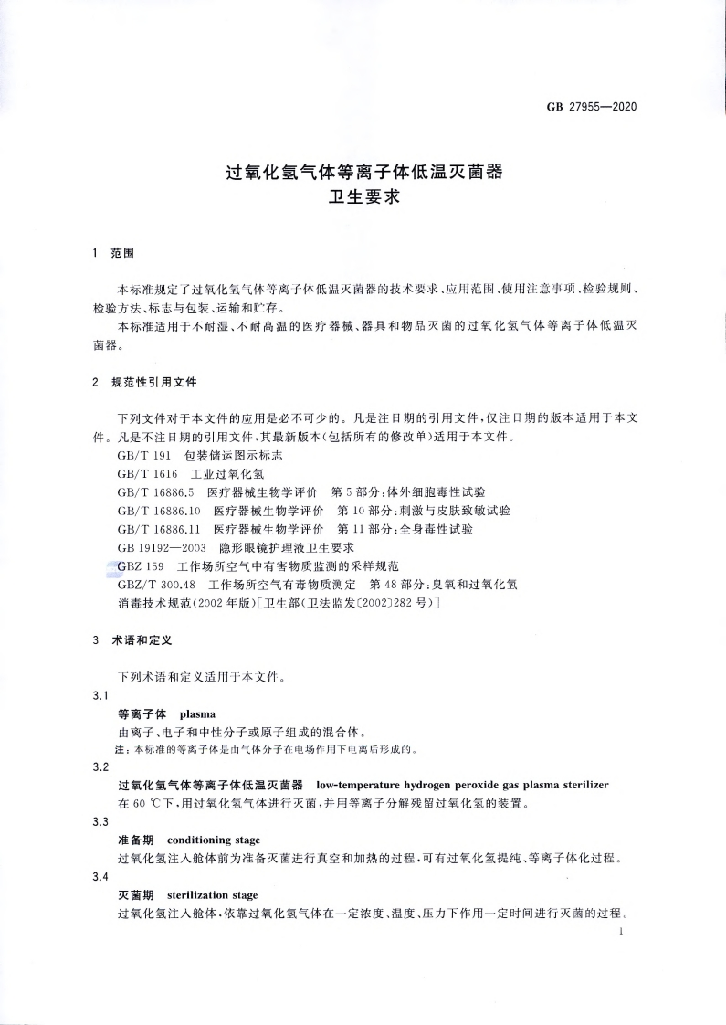 过氧化氢气体等离子体低温灭菌器卫生要求Hygienicrequirementsforlow-temperaturehydrogenperoxidegasplasmasterilizer348072@abc15天前发布关注私信3.42MB13页043过氧化氢气体等离子体低温灭菌器卫生要求Hygienicrequirementsforlow-temperaturehydrogenperoxidegasplasmasterilizer此内容为付费资源,请付费后查看¥13¥19黄金会员免费钻石会员免费立即购买您当前未登录!建议登陆后购买,可保存购买订单付费资源 第1页 / 共13页 第2页 / 共13页 第3页 / 共13页 第4页 / 共13页 第5页 / 共13页 试读已结束,还剩8页,您可下载完整版后进行离线阅读 THE END标准规范 文本预览 1CS11.080C50GB中华人民共和国国家标准GB27955-2020代替GB27955-2011过氧化氢气体等离子体低温灭菌器卫生要求Hygienic requirements for low-temperature hydrogen peroxidegas plasma sterilizer2020-04-09发布2020-11-01实施国家市场监督管理总局国家标准化管理委员会发布 查看更多 收起部分 喜欢就支持一下吧收藏