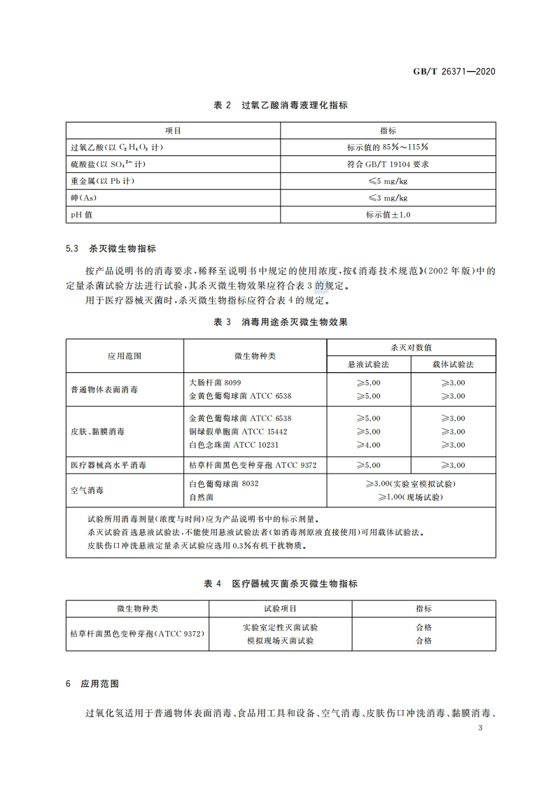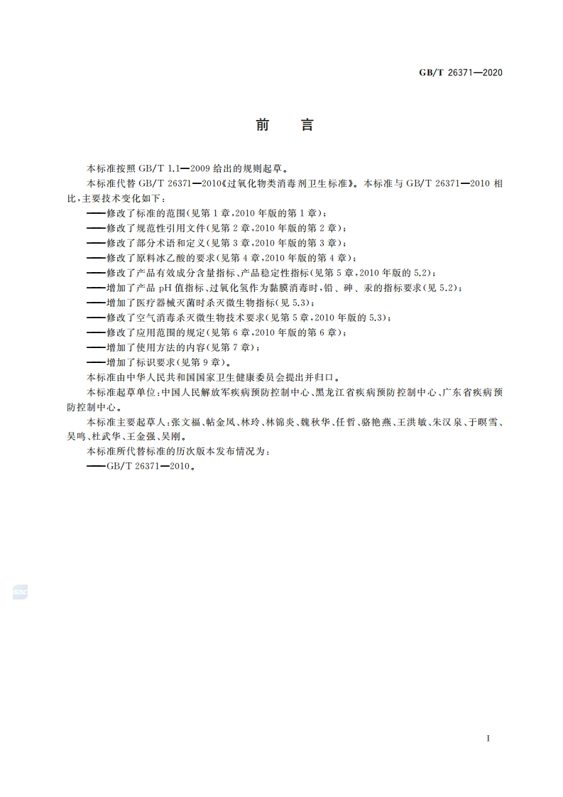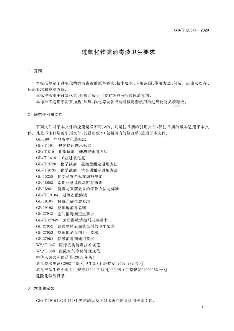 过氧化物类消毒液卫生要求Hygienicreguirementsforperoxidedisinfectants348072@abc15天前发布关注私信0.44MB7页028过氧化物类消毒液卫生要求Hygienicreguirementsforperoxidedisinfectants此内容为付费资源,请付费后查看¥13¥19黄金会员免费钻石会员免费立即购买您当前未登录!建议登陆后购买,可保存购买订单付费资源 第1页 / 共7页 第2页 / 共7页 第3页 / 共7页 第4页 / 共7页 第5页 / 共7页 试读已结束,还剩2页,您可下载完整版后进行离线阅读 THE END标准规范 文本预览 ICS11.080C50B中华人民共和国国家标准GB/T26371-2020代替GB/T26371一2010过氧化物类消毒液卫生要求Hygienic requirements for peroxide disinfectants2020-06-02发布2020-12-01实施国家市场监督管理总局国家标准化管理委员会发布 查看更多 收起部分 喜欢就支持一下吧收藏