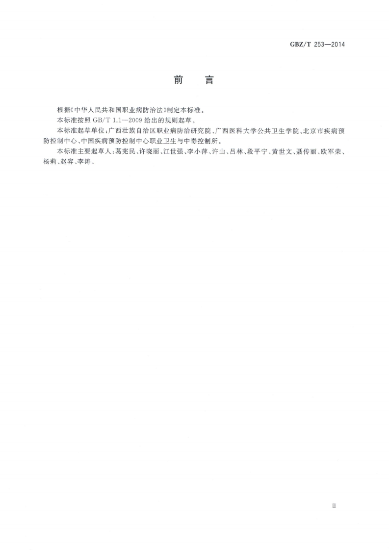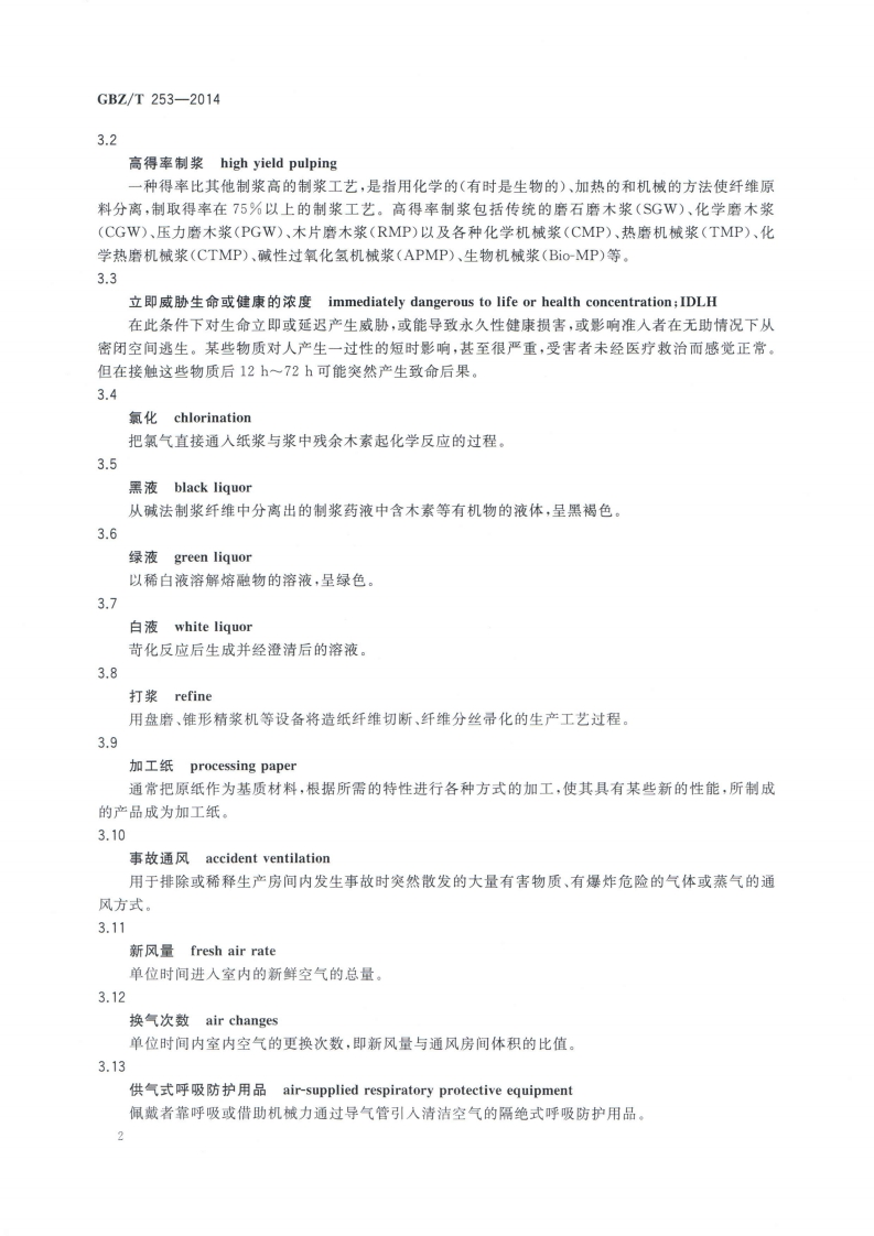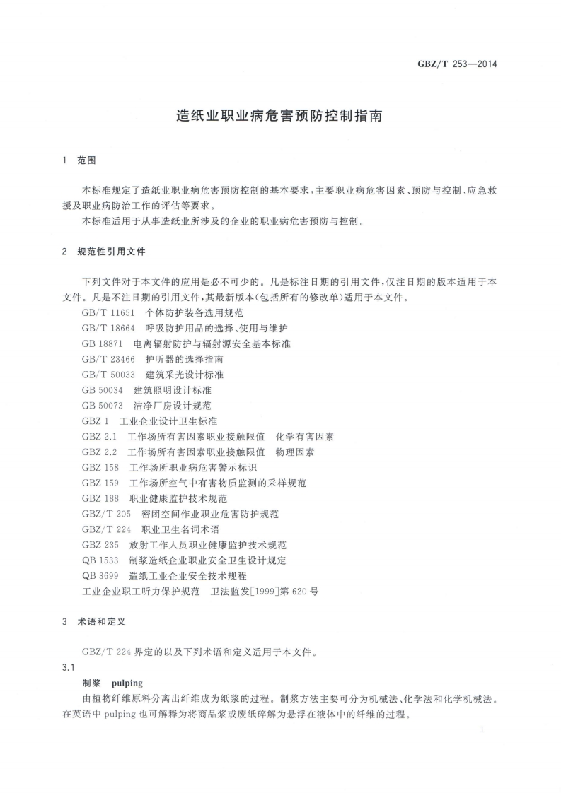 造纸业职业病危害预防控制指南Guidelineforpreventionandcontrolofoccupationalhazardsinpapermakingindustry348072@abc15天前发布关注私信16.37MB37页037造纸业职业病危害预防控制指南Guidelineforpreventionandcontrolofoccupationalhazardsinpapermakingindustry此内容为付费资源,请付费后查看¥13¥19黄金会员免费钻石会员免费立即购买您当前未登录!建议登陆后购买,可保存购买订单付费资源 第1页 / 共37页 第2页 / 共37页 第3页 / 共37页 第4页 / 共37页 第5页 / 共37页 试读已结束,还剩32页,您可下载完整版后进行离线阅读 THE END标准规范 文本预览 ICS13.100C52B☑中华人民共和国国家职业卫生标准GBZ/T253-2014造纸业职业病危害预防控制指南Guideline for prevention and control of occupational hazardsin papermaking industry2014-10-13发布2015-03-01实施中华人民共和国国家卫生和计划生育委员会发布 查看更多 收起部分 喜欢就支持一下吧收藏