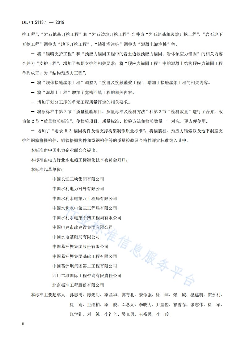 ICS27.100P59DL中华人民共和国电为行业标准PDL/T5113.1-2019代替DL/T5113.1一2005水电水利基本建设工程单元工程质量等级评定标准第1部分:土建工程Quality grade evaluation standard of unit engineering for hydropower andwater conservancy construction engineering-Part1:Civil Engineering行业标准信息服务平台2019-6-4发布2019-10-01实施国家能源局发布
