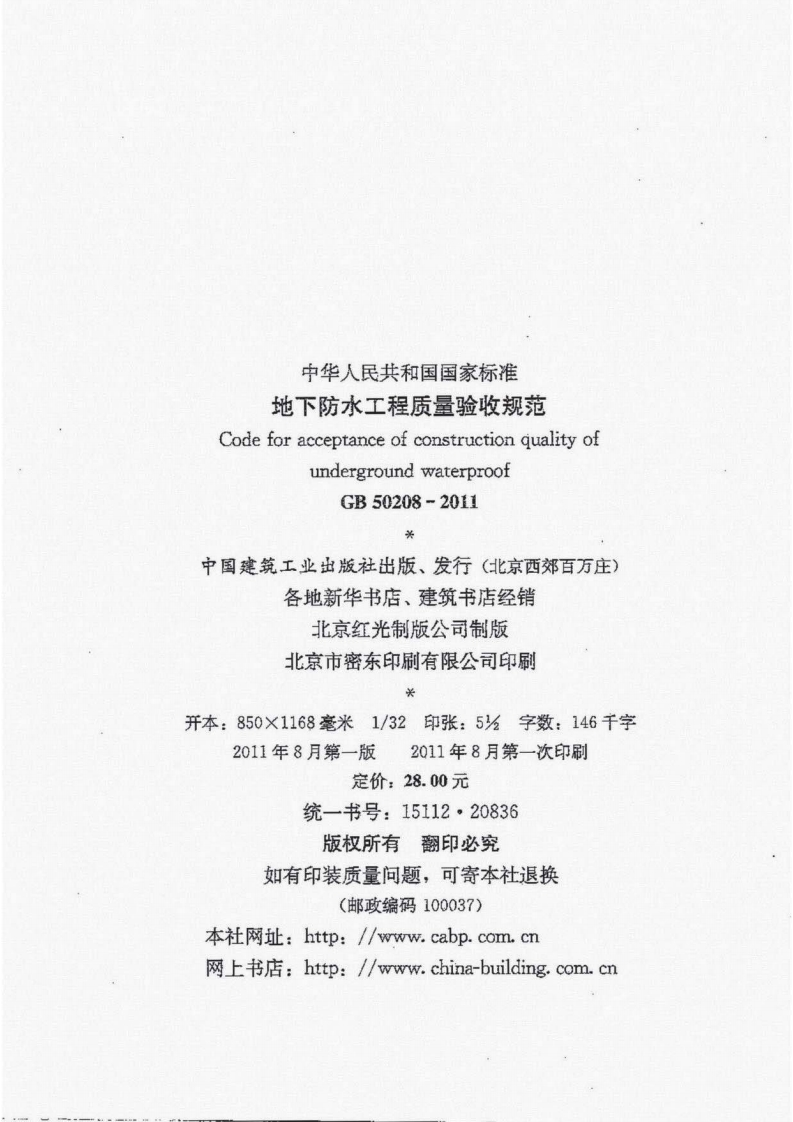GB50208地下防水工程质量验收规范CodeforacceptanceofconstructionqualityofwaLernrO0348072@abc11天前发布关注私信42.78MB176页044GB50208地下防水工程质量验收规范CodeforacceptanceofconstructionqualityofwaLernrO0此内容为付费资源,请付费后查看¥13¥19黄金会员免费钻石会员免费立即购买您当前未登录!建议登陆后购买,可保存购买订单付费资源 第1页 / 共176页 第2页 / 共176页 第3页 / 共176页 第4页 / 共176页 第5页 / 共176页 试读已结束,还剩171页,您可下载完整版后进行离线阅读 THE END标准规范 文本预览 UDC中华人民共和国国家标准PGB50208-2011地下防水工程质量验收规范Code for acceptance of construction quality ofunderground waterproof2011-04-02发布2012-10-01实施 查看更多 收起部分 喜欢就支持一下吧收藏