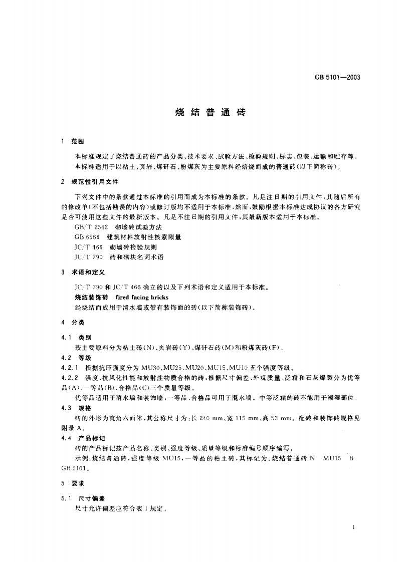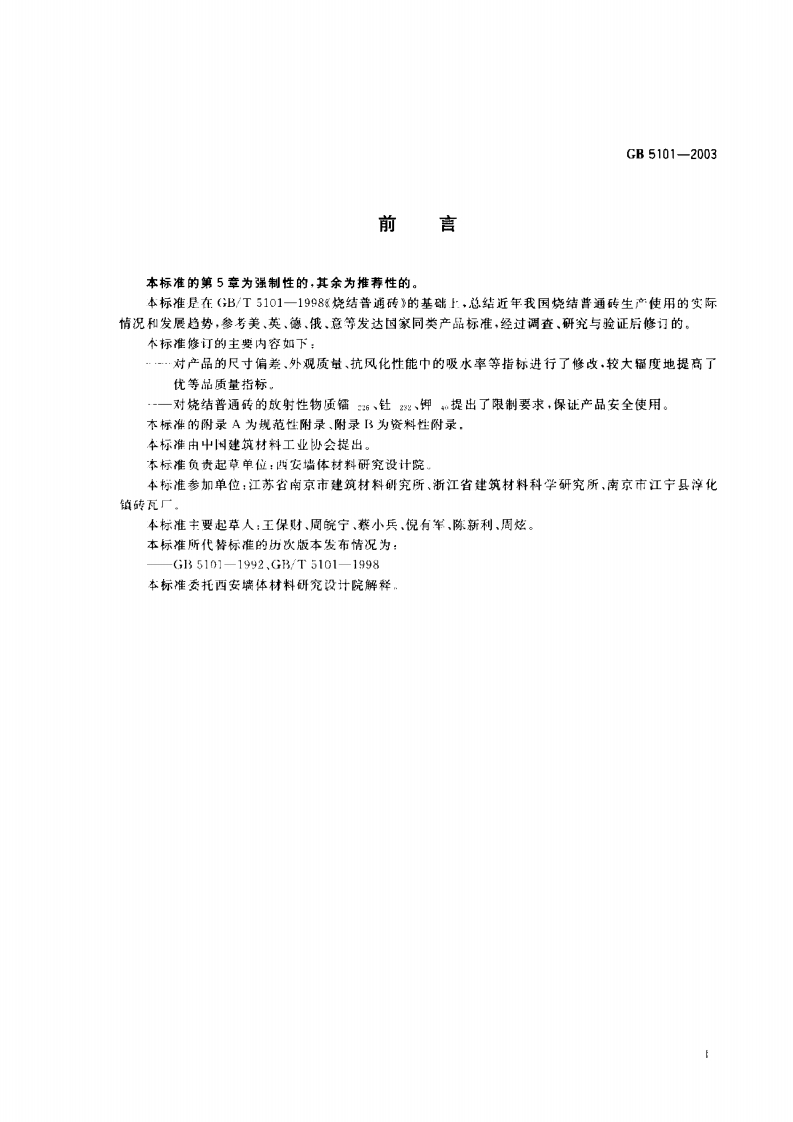 GB5101-代替(B_T510)烧普结通砖Firedcommonbricks348072@abc11天前发布关注私信0.24MB11页029GB5101-代替(B_T510)烧普结通砖Firedcommonbricks此内容为付费资源,请付费后查看¥13¥19黄金会员免费钻石会员免费立即购买您当前未登录!建议登陆后购买,可保存购买订单付费资源 第1页 / 共11页 第2页 / 共11页 第3页 / 共11页 第4页 / 共11页 第5页 / 共11页 试读已结束,还剩6页,您可下载完整版后进行离线阅读 THE END标准规范 文本预览 1CS91.100.20Q15中华人民共和国国家标准GB5101-2003代替GBT51011998烧结普通砖Fired common bricks2003-04-29发布2004-04-01实施小华人民共和国国家质量监督检验检疫总局发布 查看更多 收起部分 喜欢就支持一下吧收藏