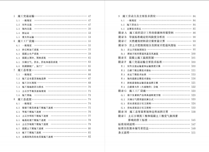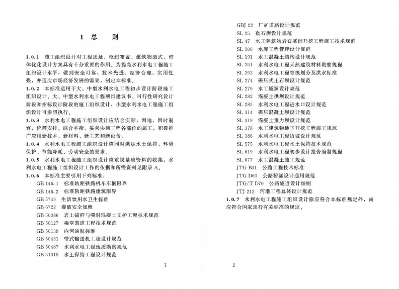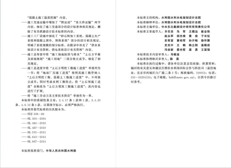 1C895.160P59SL中华人民共和国水利行业标准前言SL303-2017替代SL.303-2004SL484-2010根据水利技术标准制修订计划安排,按照SL1一2014《水SL487-2010利技术标准编写规定》的要求,对SL303一2004《水利水电工SL.535-2011程值工组织设计规范》进行修订。SL.643-2013本标准修订时合并了SL.484一2010《水利水电工程随工机SL667-2014拔设备选择设计导则》、SL487一2010《水利水电工程施工总布置设计规范》、SL535一2011《水利水电工程随工压缩空气及供水供电系统设计规范》、SL643一2013《水利水电工程施工总进度设计规范》、SL667一2014《水利水电工程施工交通设计规范》相关内容。本标准共9章和9个附录,主要技术内容有:能工导水利水电工程施工组织设计规范流、料源选择与料场开采、主体工程施工、施工交通运输、施工工厂设施、随工总布置、施工总进度、施工劳动力及主要技术供Specifications for construction planning应等。本次修订的主要内容有:of water resources and hydropower projects一旅工导流中增加了“施工期度讯”“导洗建筑物封堵”两节,将“随工期蓄水与下游供水”“施工期通航与排冰”分列为两节,补充了岩塞、充蓄水库工程等槌工导流的相关规定,补充细化了导流方式及导洗程序、导流建筑物型式的相关规定,将“料源述择与料场开采”独立作为一章,明确了设计需要量应考虑的扩大系数,规划开采量应考虑的备用系数。附录中新增加了“天然建筑材料设计需要量计算”2017-09-08发布2017-12-08实施内容。主体工程施工中增加了“随工机被设备选择”一节;将“土石坝怖工”改为“士石方填筑”,并补充了吹填随工技术内容;“混凝土植工”部分补充了混凝土温度控制中华人民共和国水利部发布和胶凝砂砾石坝筑圳技术的相关规定,在附录中补充了