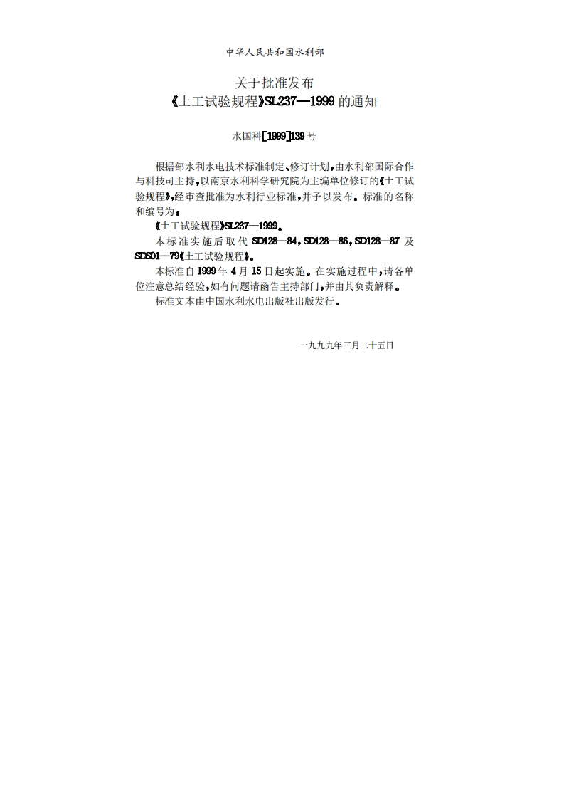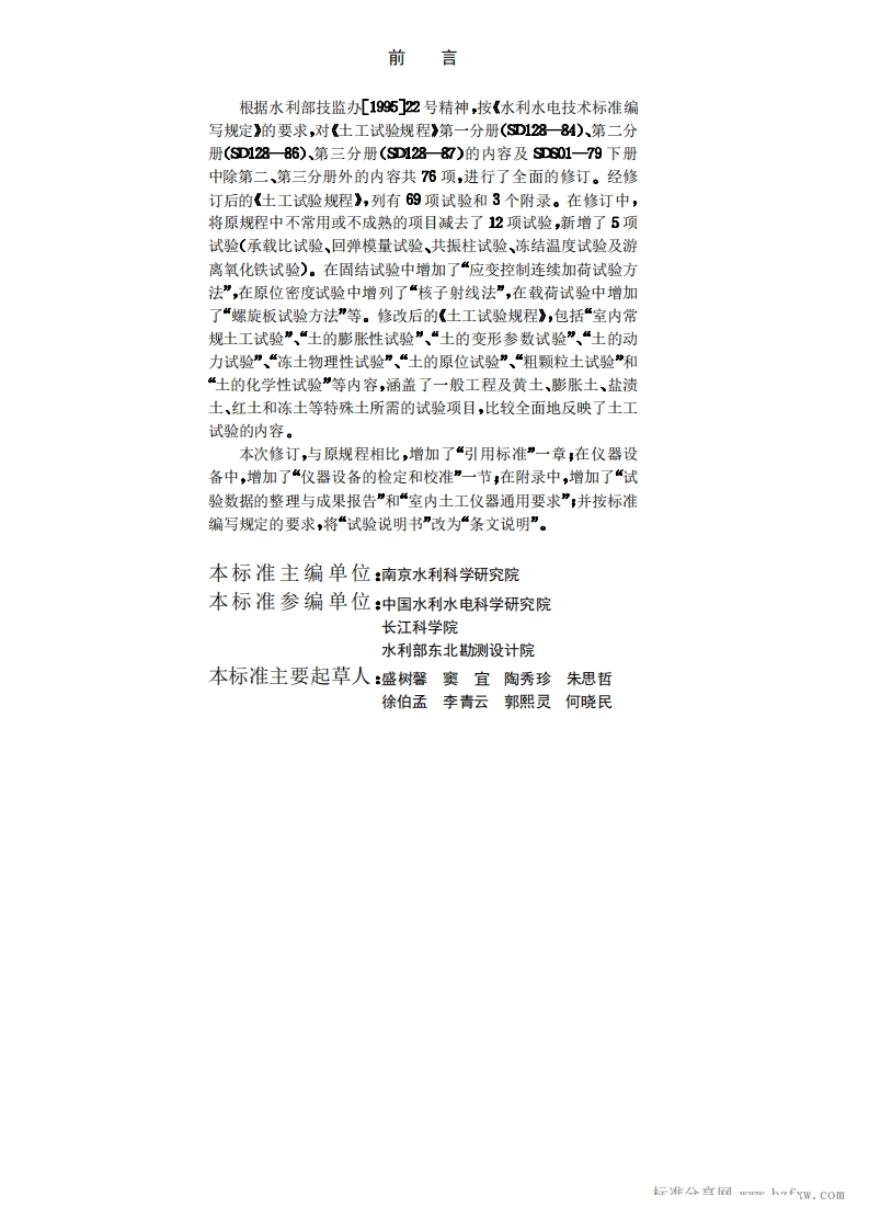 土工试验规程Specificationofsoiltest1999-03-25发布1999-04-15实施348072@abc9天前发布关注私信21.36MB545页032土工试验规程Specificationofsoiltest1999-03-25发布1999-04-15实施此内容为付费资源,请付费后查看¥13¥19黄金会员免费钻石会员免费立即购买您当前未登录!建议登陆后购买,可保存购买订单付费资源 第1页 / 共545页 第2页 / 共545页 第3页 / 共545页 第4页 / 共545页 第5页 / 共545页 试读已结束,还剩540页,您可下载完整版后进行离线阅读 THE END标准规范 文本预览 UDC中华人民共和国行业标准SLPSL2371999土工试验规程Specification of soil test1999-03-25发布199904-15实施中华人民共和国水利部发布 查看更多 收起部分 喜欢就支持一下吧收藏