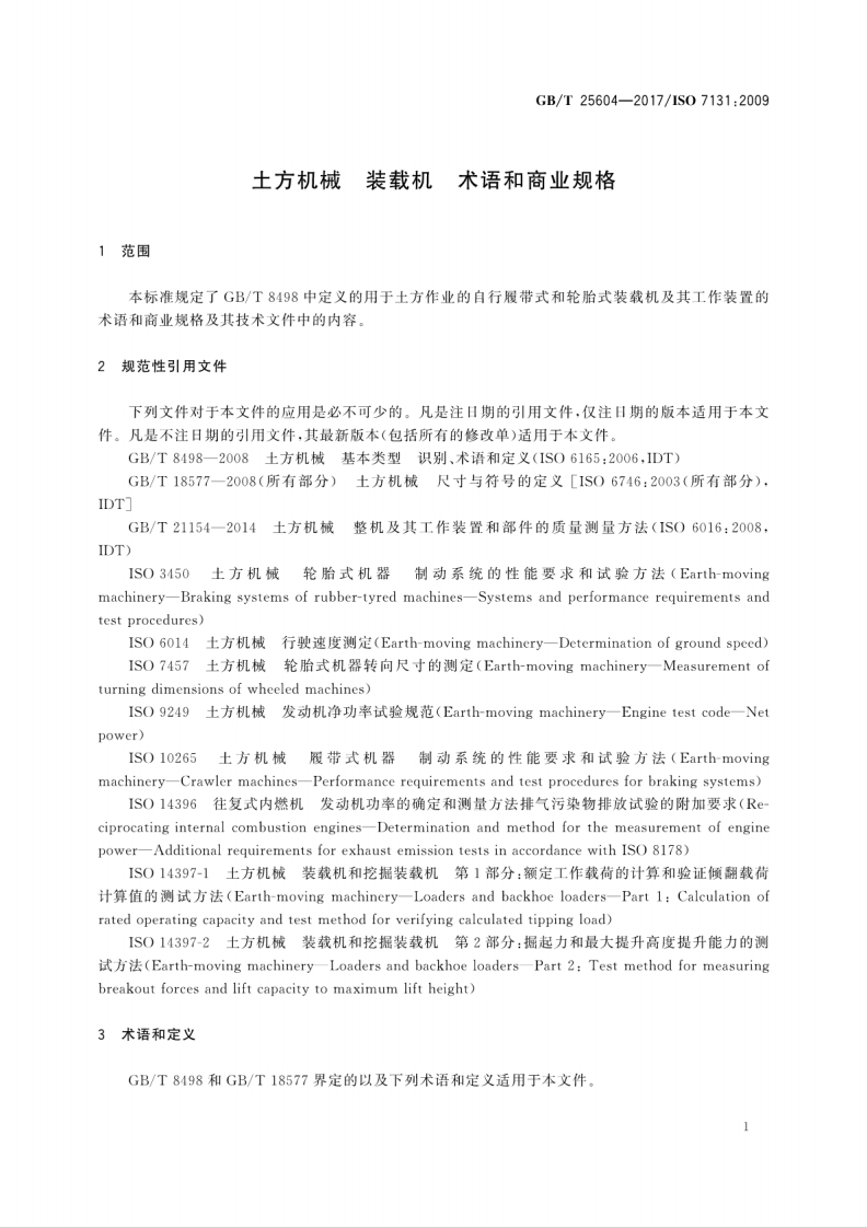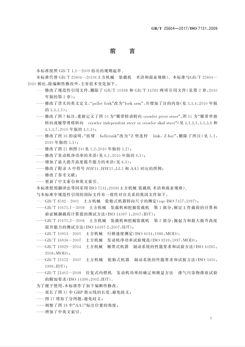 1Cs01.040.53:53.100P97GB中华人民共和国国家标准GB/T25604-2017/IS07131:2009代替GB/T25604-2010土方机械装载机术语和商业规格Earth-moving machinery-Loaders-Terminology and commercial specifications(ISO7131:2009,IDT)2017-12-29发布2018-07-01实施中华人民共和国国家质量监督检验检疫总局中国国家标准化管理委员会发布