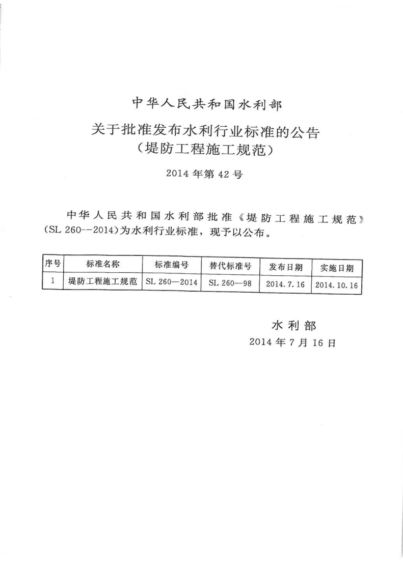 堤防工程施工规范Specificationforleveeprojeetconstruction348072@abc10天前发布关注私信24.65MB121页020堤防工程施工规范Specificationforleveeprojeetconstruction此内容为付费资源,请付费后查看¥13¥19黄金会员免费钻石会员免费立即购买您当前未登录!建议登陆后购买,可保存购买订单付费资源 第1页 / 共121页 第2页 / 共121页 第3页 / 共121页 第4页 / 共121页 第5页 / 共121页 试读已结束,还剩116页,您可下载完整版后进行离线阅读 THE END标准规范 文本预览 1CS27.140P55SL中华人民共和国水利行业标准SL260-2014体代S1.260-98堤防工程施工规范Specification for levee project construction2014-07-16发布2014-10-16实施中华人民共和国水利部发布 查看更多 收起部分 喜欢就支持一下吧收藏