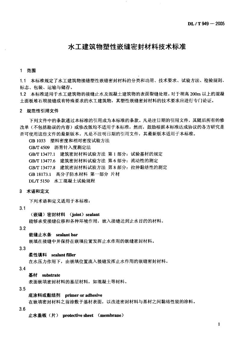 工建筑物塑性嵌缝密封材料技术标准Standardforjointplastiesealantofhydraulicstructure348072@abc11天前发布关注私信0.28MB9页026工建筑物塑性嵌缝密封材料技术标准Standardforjointplastiesealantofhydraulicstructure此内容为付费资源,请付费后查看¥13¥19黄金会员免费钻石会员免费立即购买您当前未登录!建议登陆后购买,可保存购买订单付费资源 第1页 / 共9页 第2页 / 共9页 第3页 / 共9页 第4页 / 共9页 第5页 / 共9页 试读已结束,还剩4页,您可下载完整版后进行离线阅读 THE END标准规范 文本预览 ICS27.100Q24备案号:15352-2005DL中华人民共和国电力行业标准DL/T949-2005水工建筑物塑性嵌缝密封材料技术标准Standard for joint plastic sealant of hydraulic structure2005-02-14发布2005-06-01实施中华人民共和国国家发展和改革委员会发布 查看更多 收起部分 喜欢就支持一下吧收藏