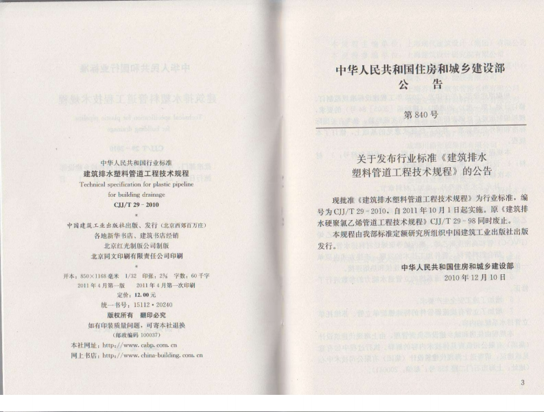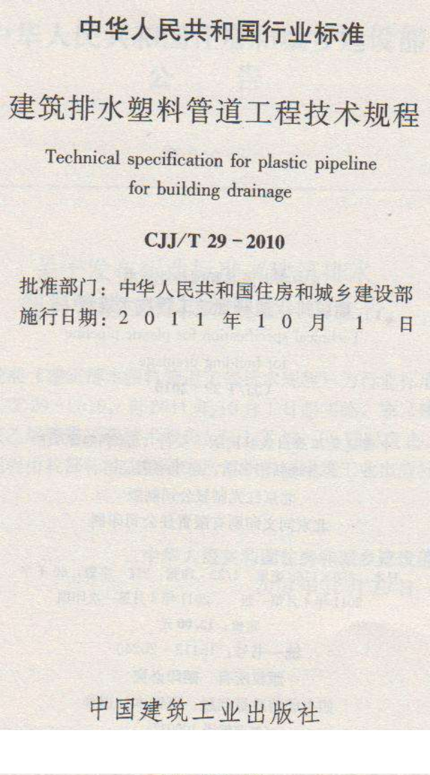 建筑排水塑料管道工程技术规Technicalspecificationforplastiepipelineforbuildingdrainage348072@abc11天前发布关注私信11.27MB39页022建筑排水塑料管道工程技术规Technicalspecificationforplastiepipelineforbuildingdrainage此内容为付费资源,请付费后查看¥13¥19黄金会员免费钻石会员免费立即购买您当前未登录!建议登陆后购买,可保存购买订单付费资源 第1页 / 共39页 第2页 / 共39页 第3页 / 共39页 第4页 / 共39页 第5页 / 共39页 试读已结束,还剩34页,您可下载完整版后进行离线阅读 THE END标准规范 文本预览 UDC中华人民共和国行业标准CJJCJJ/T29-2010P备案号J1136-2010建筑排水塑料管道工程技术规程Technical specification for plastic pipelinefor building drainage2010-12-10发布2011-10-01实施中华人民共和国住房和城乡建设部发布 查看更多 收起部分 喜欢就支持一下吧收藏