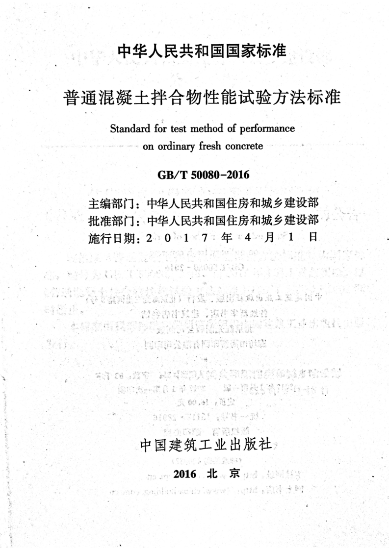 普通混凝土拌合物性能试验方法权Standardfortestmethodofperformanceonordinaryfreshconcrete348072@abc12天前发布关注私信32.80MB99页042普通混凝土拌合物性能试验方法权Standardfortestmethodofperformanceonordinaryfreshconcrete此内容为付费资源,请付费后查看¥13¥19黄金会员免费钻石会员免费立即购买您当前未登录!建议登陆后购买,可保存购买订单付费资源 第1页 / 共99页 第2页 / 共99页 第3页 / 共99页 第4页 / 共99页 第5页 / 共99页 试读已结束,还剩94页,您可下载完整版后进行离线阅读 THE END标准规范 文本预览 UDC中华人民共和国国家标准PGB/T50080-2016普通混凝土拌合物性能试验方法标准Standard for test method of performanceon ordinary fresh concrete2016-08-18发布2017-04-01实施中华人民共和国住房和城乡建设部中华人民共和国国家质量监督检验检疫总局联合发布 查看更多 收起部分 喜欢就支持一下吧收藏