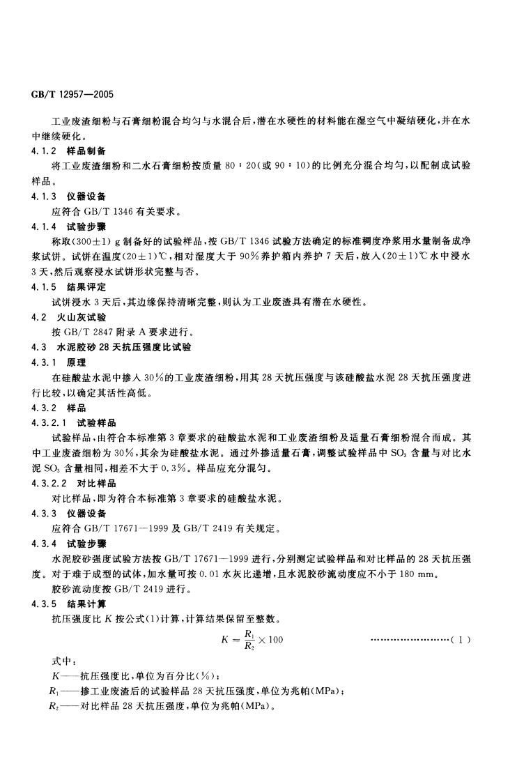 替GB_T12957-1991于水泥混合材的工业废渣活性试验方法estmethodforactivityofindustrialwasteslagusedasadditiontocement348072@abc12天前发布关注私信0.13MB5页021替GB_T12957-1991于水泥混合材的工业废渣活性试验方法estmethodforactivityofindustrialwasteslagusedasadditiontocement此内容为付费资源,请付费后查看¥13¥19黄金会员免费钻石会员免费立即购买您当前未登录!建议登陆后购买,可保存购买订单付费资源 第1页 / 共5页 第2页 / 共5页 第3页 / 共5页 第4页 / 共5页 第5页 / 共5页 已完成全部阅读,共5页 THE END标准规范 文本预览 1CS91.100.10Q12中华人民共和国国家标准GB/T12957-2005代替GB/T12957一1991用于水泥混合材的工业废渣活性试验方法Test method for activity of industrial waste slag used as addition to cement2005-01-19发布2005-08-01实施中华人民共和国国家质量监督检验检疫总局中国国家标准化管理委员会发布 查看更多 收起部分 喜欢就支持一下吧收藏