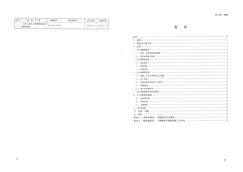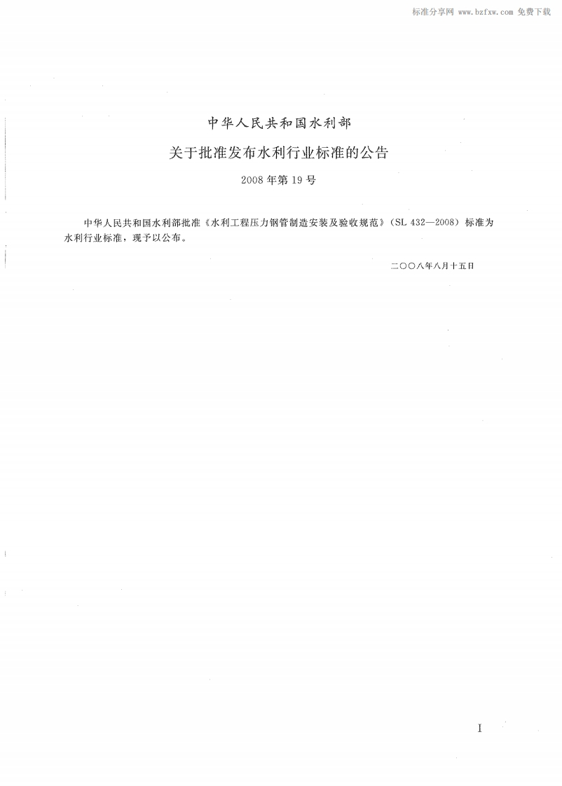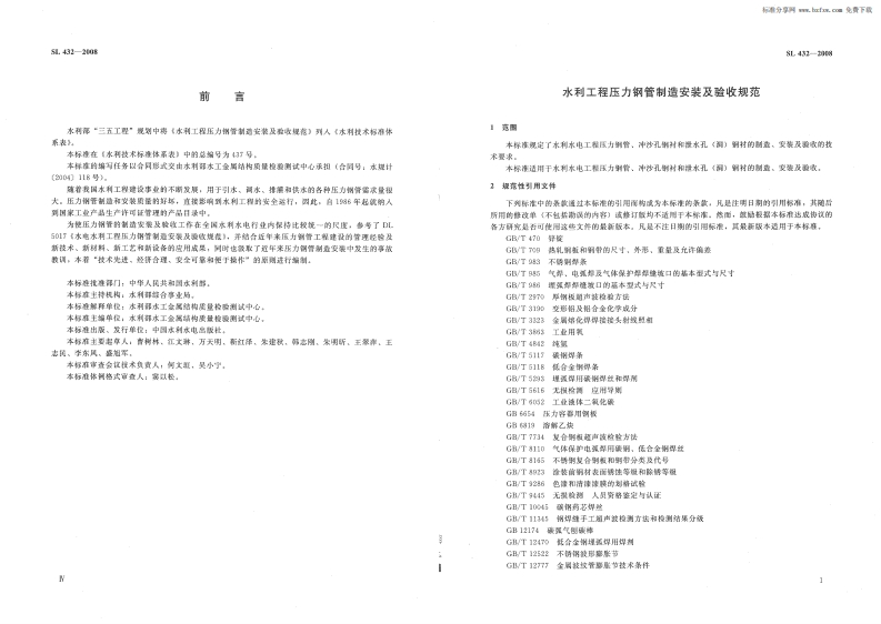 ICS23.060.30J16SL中华人民共和国水利行业标准SL432-2008水利工程压力钢管制造安装及验收规范Specification for manufacture and installation togetherwith acceptance of steel penstocks whichbe served hydraulic engineering2008-08-15发布2008-11-15实施中华人民共和国水利邵发布