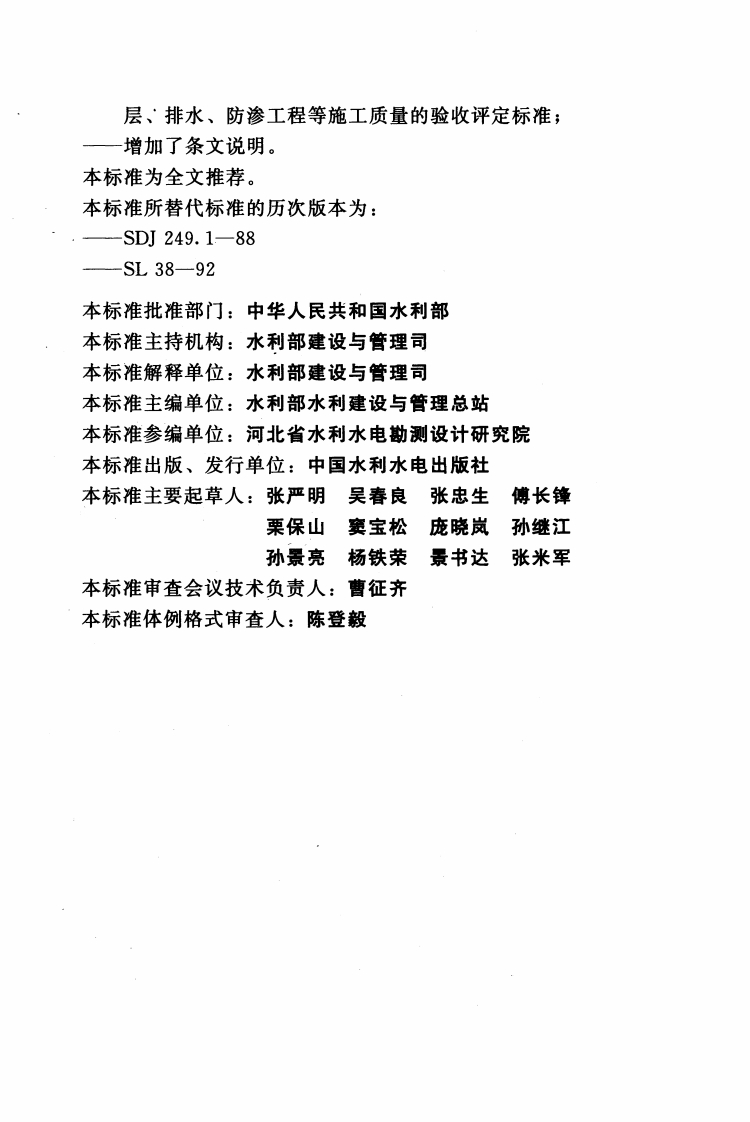 ICS27.140P55SL中华人民共和国水利行业标准SL631-2012替代SDJ249.1一88SL38-92水利水电工程单元工程施工质量验收评定标准一土石方工程Inspection and assessment standard for separated itemproject construction quality of water conservancyand hydroelectric engineering一Earth-Rock works2012-09-19发布2012-12-19实施中华人民共和国水利部发布