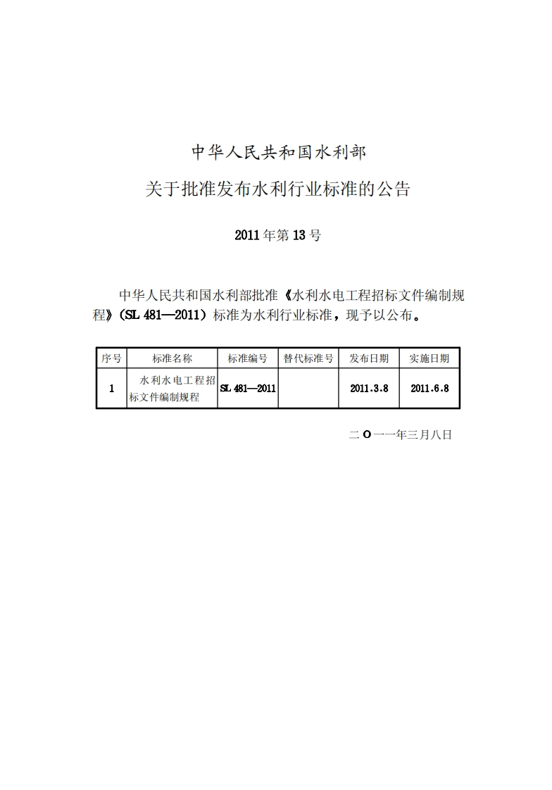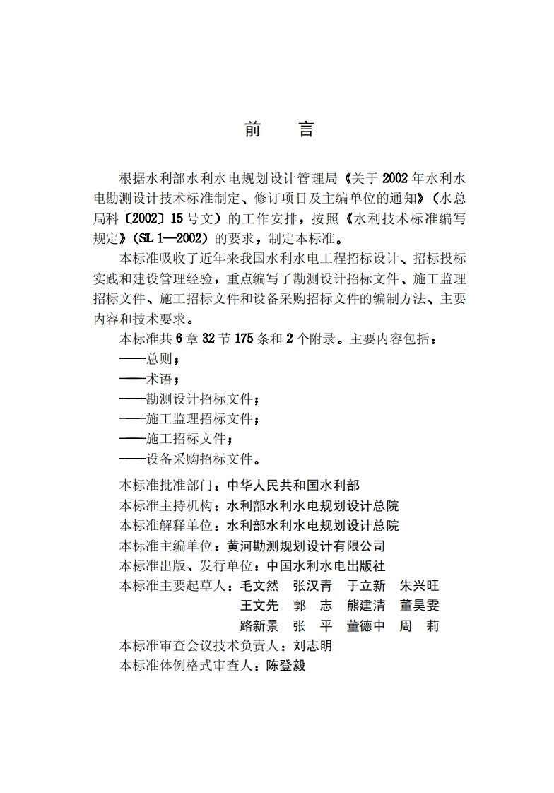 水利水电工程招标文件编制规程Compilationrulesforbiddingdocumentofwaterresourcesandhydropowerproject2011-03-08发布2011-06-08实施348072@abc13天前发布关注私信1.75MB128页045水利水电工程招标文件编制规程Compilationrulesforbiddingdocumentofwaterresourcesandhydropowerproject2011-03-08发布2011-06-08实施此内容为付费资源,请付费后查看¥13¥19黄金会员免费钻石会员免费立即购买您当前未登录!建议登陆后购买,可保存购买订单付费资源 第1页 / 共128页 第2页 / 共128页 第3页 / 共128页 第4页 / 共128页 第5页 / 共128页 试读已结束,还剩123页,您可下载完整版后进行离线阅读 THE END标准规范 文本预览 ICS93.160P59SL中华人民共和国水利行业标准SL481一2011水利水电工程招标文件编制规程Compilation rules for bidding document of waterresources and hydropower project2011-03-08发布2011-06-08实施中华人民共和国水利部发布 查看更多 收起部分 喜欢就支持一下吧收藏