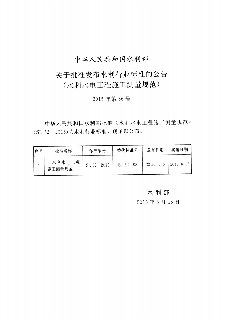 水利水电工程施工测量规范Specificationforconstructionsurveyofwaterandhydropowerprojects348072@abc14天前发布关注私信7.78MB162页036水利水电工程施工测量规范Specificationforconstructionsurveyofwaterandhydropowerprojects此内容为付费资源,请付费后查看¥13¥19黄金会员免费钻石会员免费立即购买您当前未登录!建议登陆后购买,可保存购买订单付费资源 第1页 / 共162页 第2页 / 共162页 第3页 / 共162页 第4页 / 共162页 第5页 / 共162页 试读已结束,还剩157页,您可下载完整版后进行离线阅读 THE END标准规范 文本预览 ICS27.140P55SL中华人民共和国水利行业标准SL52-2015替代SL52-93水利水电工程施工测量规范Specification for construction survey ofwater and hydropower projects2015-05-15发布2015-08-15实施中华人民共和国水利部发布出 查看更多 收起部分 喜欢就支持一下吧收藏