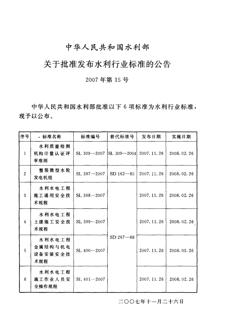 水利水电工程施工通用安全技术规程eneraltechnicalspecificationforsafetyofhydrauandhydroelectricengineeringconstruction348072@abc14天前发布关注私信8MB249页035水利水电工程施工通用安全技术规程eneraltechnicalspecificationforsafetyofhydrauandhydroelectricengineeringconstruction此内容为付费资源,请付费后查看¥13¥19黄金会员免费钻石会员免费立即购买您当前未登录!建议登陆后购买,可保存购买订单付费资源 第1页 / 共249页 第2页 / 共249页 第3页 / 共249页 第4页 / 共249页 第5页 / 共249页 试读已结束,还剩244页,您可下载完整版后进行离线阅读 THE END标准规范 文本预览 ICS93.160P59SL备案号22214一2008中华人民共和国水利行业标准SL398—2007替代SD267一88水利水电工程施工通用安全技术规程General technical specification for safety of hydraulicand hydroelectric engineering construction2007-11-26发布2008-02-26实施中华人民共和国水利部发布 查看更多 收起部分 喜欢就支持一下吧收藏