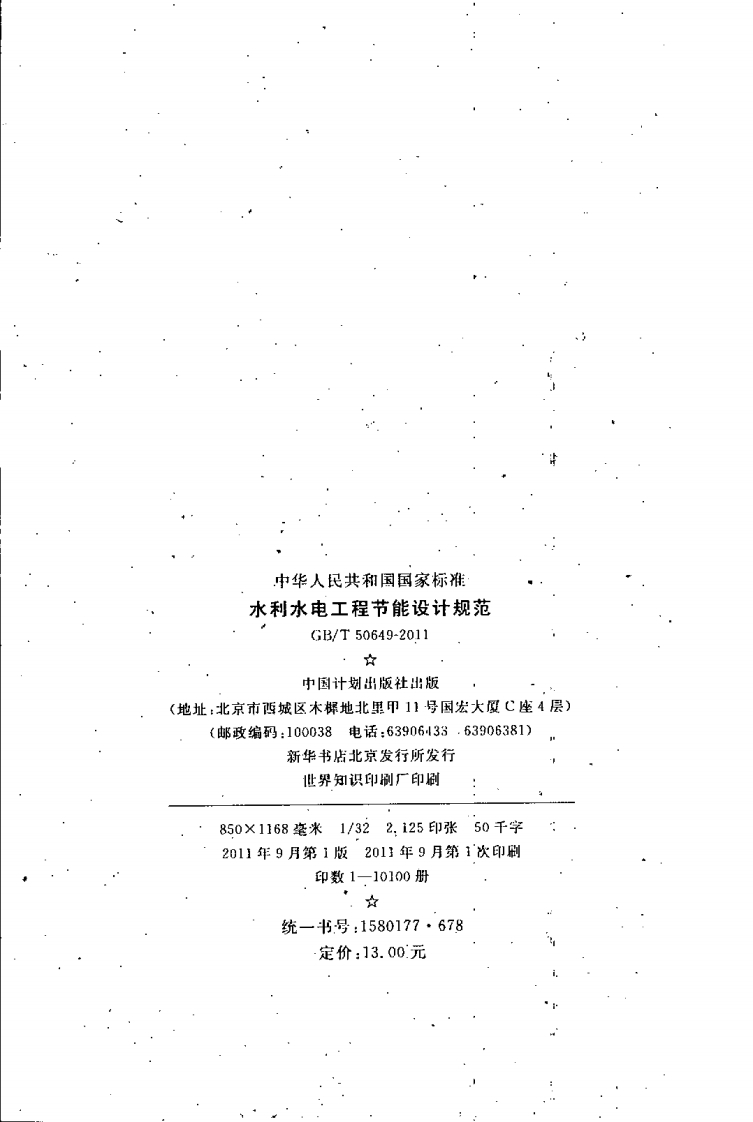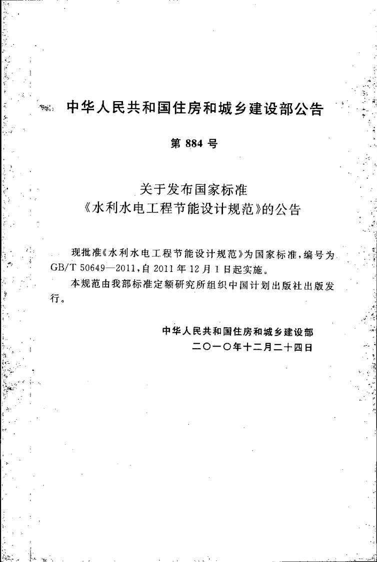 UDC,中华人民共和国国家标准GBPGB/T50649-2011水利水电工程节能设计规范Code for design of energy savingfor water resources and hydropower projects2010-12-24发布2011-12-01实施中华人民共和国住房和城乡建设部中华人民共和国国家质量监督检验检疫总局联合发布