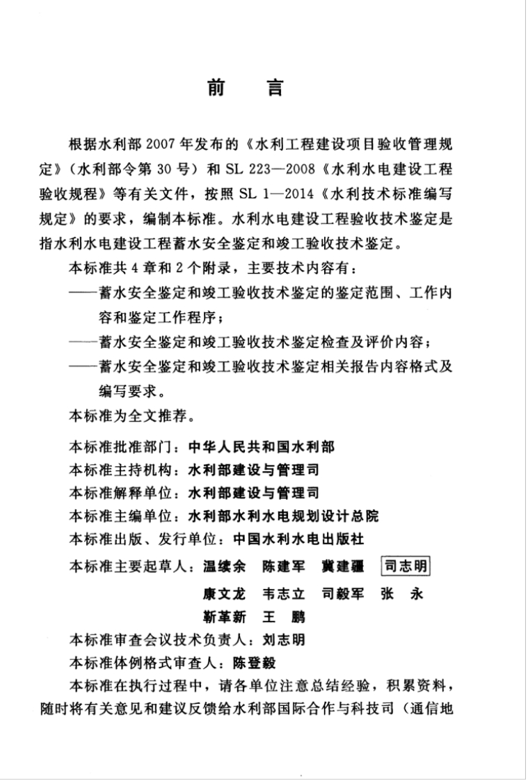 水利水电建设工程验收鉴定导则348072@abc15天前发布关注私信9.78MB56页036水利水电建设工程验收鉴定导则此内容为付费资源,请付费后查看¥13¥19黄金会员免费钻石会员免费立即购买您当前未登录!建议登陆后购买,可保存购买订单付费资源 第1页 / 共56页 第2页 / 共56页 第3页 / 共56页 第4页 / 共56页 第5页 / 共56页 试读已结束,还剩51页,您可下载完整版后进行离线阅读 THE END标准规范 文本预览 中华人民共和国水利行业标准SL670-2015水利水电建设工程验收技术鉴定导则Guidelines for technical appraisal on acceptance ofwater conservancy and hydropower engineering2015-08-11发布2015-11-11实施中华人民共和国水利部发布 查看更多 收起部分 喜欢就支持一下吧收藏