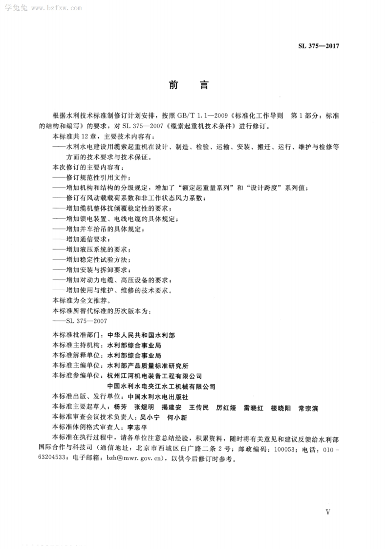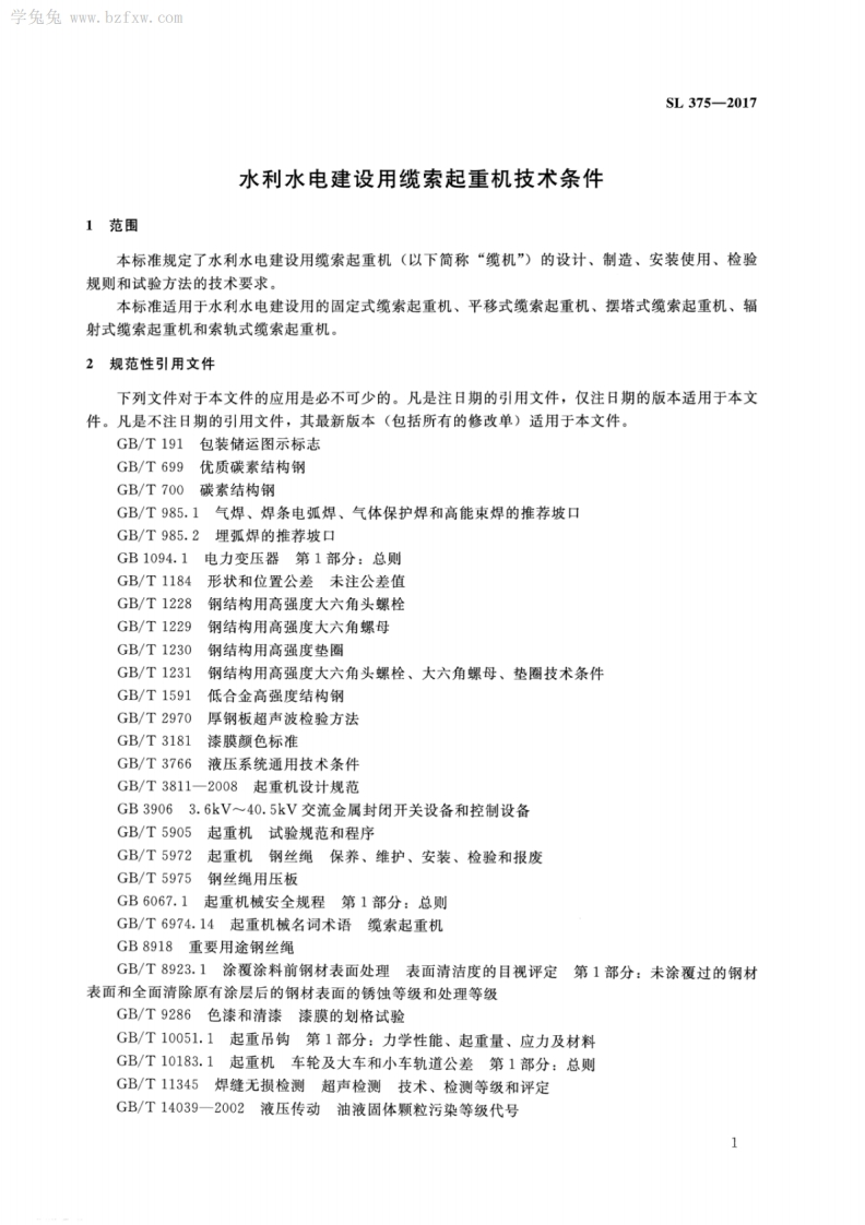 水利水电建设用缆索起重机技术条件Technicalrequirementsofcablecraneforwaterandhydropowerconstruction348072@abc15天前发布关注私信9.60MB26页040水利水电建设用缆索起重机技术条件Technicalrequirementsofcablecraneforwaterandhydropowerconstruction此内容为付费资源,请付费后查看¥13¥19黄金会员免费钻石会员免费立即购买您当前未登录!建议登陆后购买,可保存购买订单付费资源 第1页 / 共26页 第2页 / 共26页 第3页 / 共26页 第4页 / 共26页 第5页 / 共26页 试读已结束,还剩21页,您可下载完整版后进行离线阅读 THE END标准规范 文本预览 1CS53.020.20J80SL中华人民共和国水利行业标准SL375-2017替代SL375-2007水利水电建设用缆索起重机技术条件Technical requirements of cable crane for waterand hydropower construction2017-03-24发布2017-06-24实施中华人民共和国水利部发布 查看更多 收起部分 喜欢就支持一下吧收藏