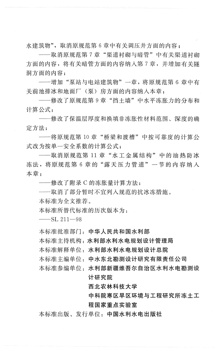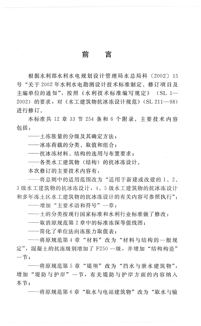 水工建筑物抗冰冻设计规范Codefordesignofhydraulicstructuresagainsticeandfreezingaction19-09发布2006-10-01实市348072@abc16天前发布关注私信7.20MB148页031水工建筑物抗冰冻设计规范Codefordesignofhydraulicstructuresagainsticeandfreezingaction19-09发布2006-10-01实市此内容为付费资源,请付费后查看¥13¥19黄金会员免费钻石会员免费立即购买您当前未登录!建议登陆后购买,可保存购买订单付费资源 第1页 / 共148页 第2页 / 共148页 第3页 / 共148页 第4页 / 共148页 第5页 / 共148页 试读已结束,还剩143页,您可下载完整版后进行离线阅读 THE END标准规范 文本预览 ICS93.160P55备案号J616-2006SL中华人民共和国水利行业标准SL211-2006替代SL211-98水工建筑物抗冰冻设计规范Code for design of hydraulic structuresagainst ice and freezing action2006-09-09发布2006-10-01实施中华人民共和国水利部发布 查看更多 收起部分 喜欢就支持一下吧收藏