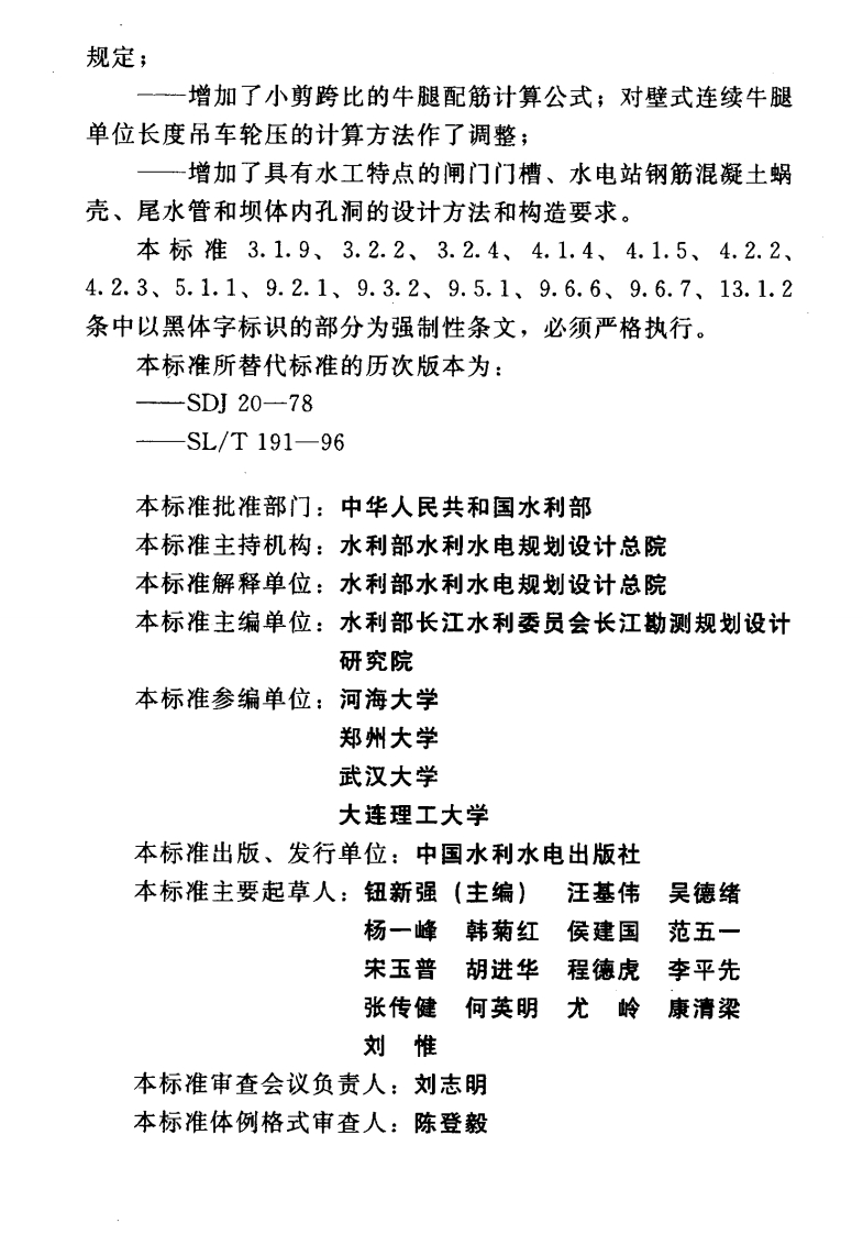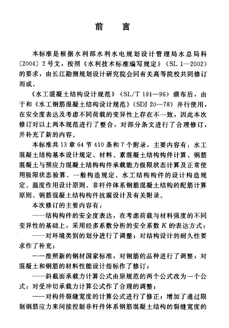 水工混凝土结构设计规范Designcodeforhydraulicconeretestructures348072@abc16天前发布关注私信15.12MB302页041水工混凝土结构设计规范Designcodeforhydraulicconeretestructures此内容为付费资源,请付费后查看¥13¥19黄金会员免费钻石会员免费立即购买您当前未登录!建议登陆后购买,可保存购买订单付费资源 第1页 / 共302页 第2页 / 共302页 第3页 / 共302页 第4页 / 共302页 第5页 / 共302页 试读已结束,还剩297页,您可下载完整版后进行离线阅读 THE END标准规范 文本预览 ICS93.160P55备案号J840一2009S中华人民共和国水利行业标准SL191-2008替代SL/T191一96和SDJ20一78水工混凝土结构设计规范Design code for hydraulic concrete structures2008-11-10发布2009-02-10实施中华人民共和国水利部发布 查看更多 收起部分 喜欢就支持一下吧收藏