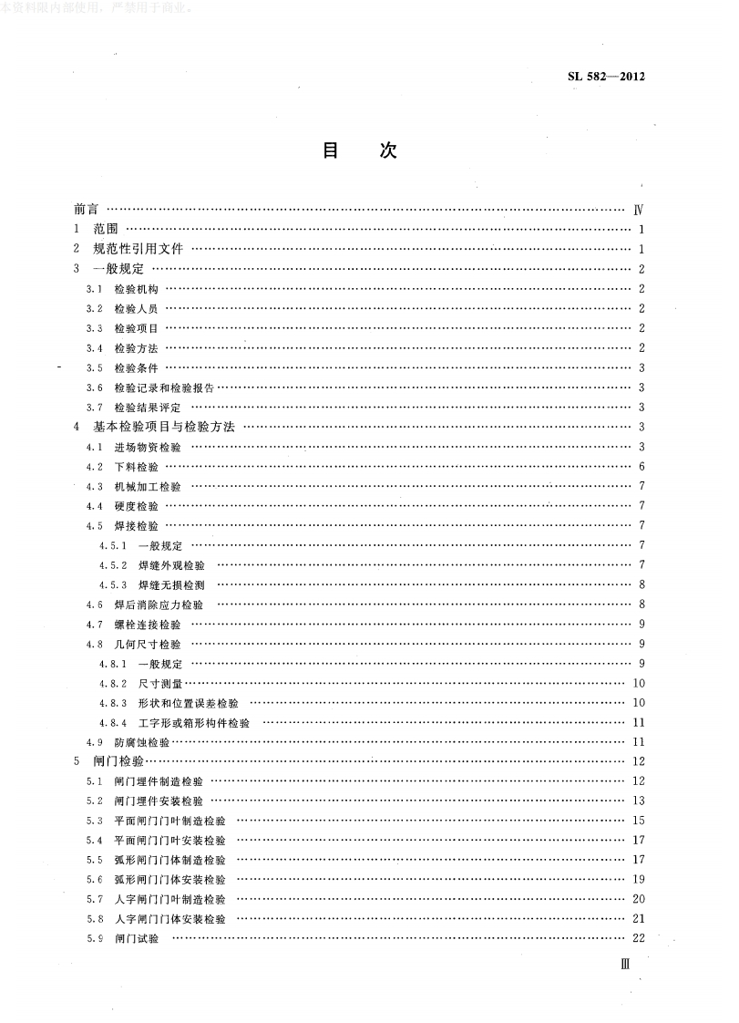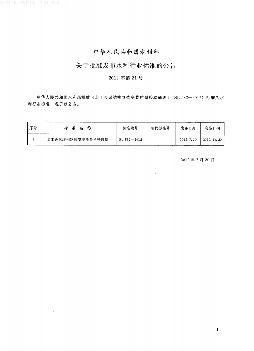 水工金属结构制造安装质量检验通则Directivesforqualityinspectionofmanufactureandinstallationofhydrosteelstructure348072@abc16天前发布关注私信2MB45页040水工金属结构制造安装质量检验通则Directivesforqualityinspectionofmanufactureandinstallationofhydrosteelstructure此内容为付费资源,请付费后查看¥13¥19黄金会员免费钻石会员免费立即购买您当前未登录!建议登陆后购买,可保存购买订单付费资源 第1页 / 共45页 第2页 / 共45页 第3页 / 共45页 第4页 / 共45页 第5页 / 共45页 试读已结束,还剩40页,您可下载完整版后进行离线阅读 THE END标准规范 文本预览 内部使用,严禁用于商业1CS91.080.10P26SL中华人民共和国水利行业标准SL582-2012水工金属结构制造安装质量检验通则Directives for quality inspection of manufactureand installation of hydro steel structure2012-07-20发布2012-10-20实施中华人民共和国水利部发布 查看更多 收起部分 喜欢就支持一下吧收藏