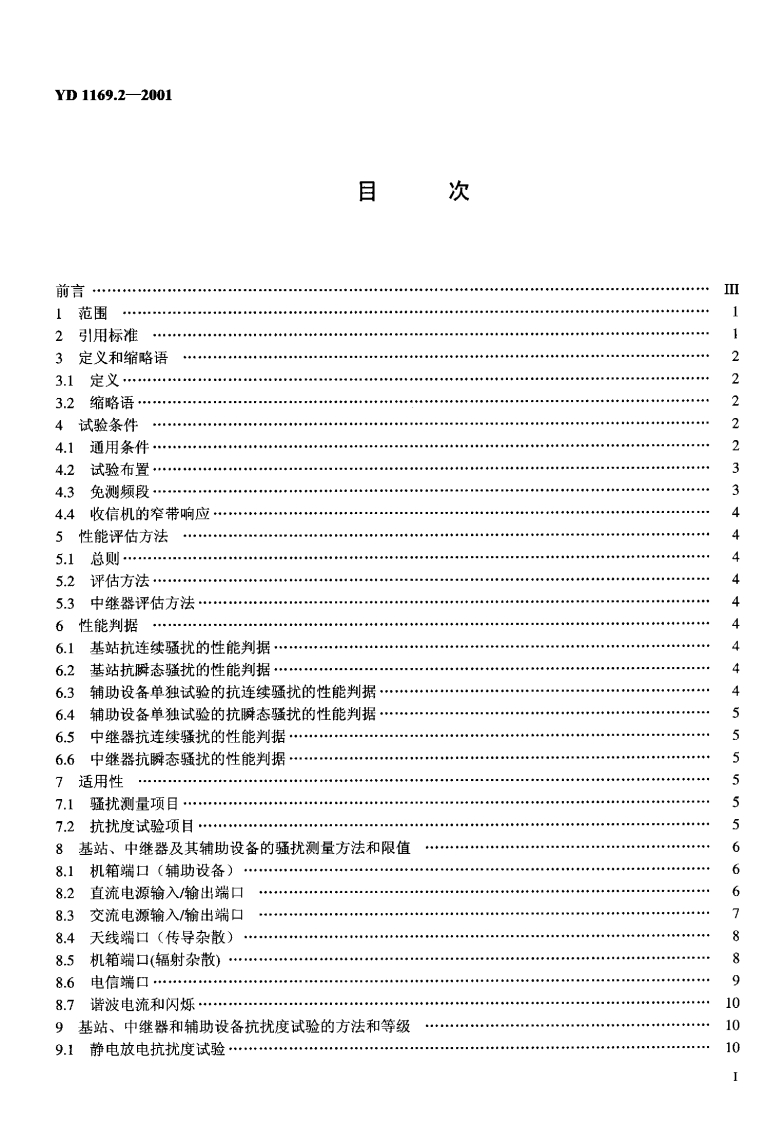 ICSYD中华人民共和国通信行业标准YD1169.2-2001800 MHz CDMA数字蜂窝移动通信系统电磁兼容性要求和测量方法第二部分:基站及其辅助设备Requirement and Measurement Methods of ElectromagneticCompatibility for 800 MHz CDMA Digital Cellular MobileTelecommunications SystemPart 2:Base Station and Ancillary Equipment2001-11-01发布2001-11-01实施中华人民共和国信息产业部发布