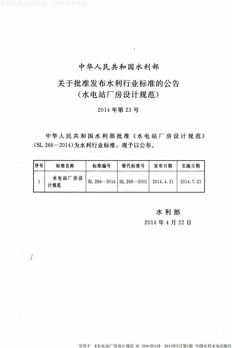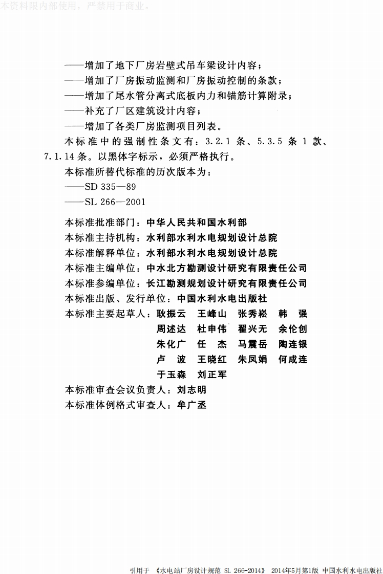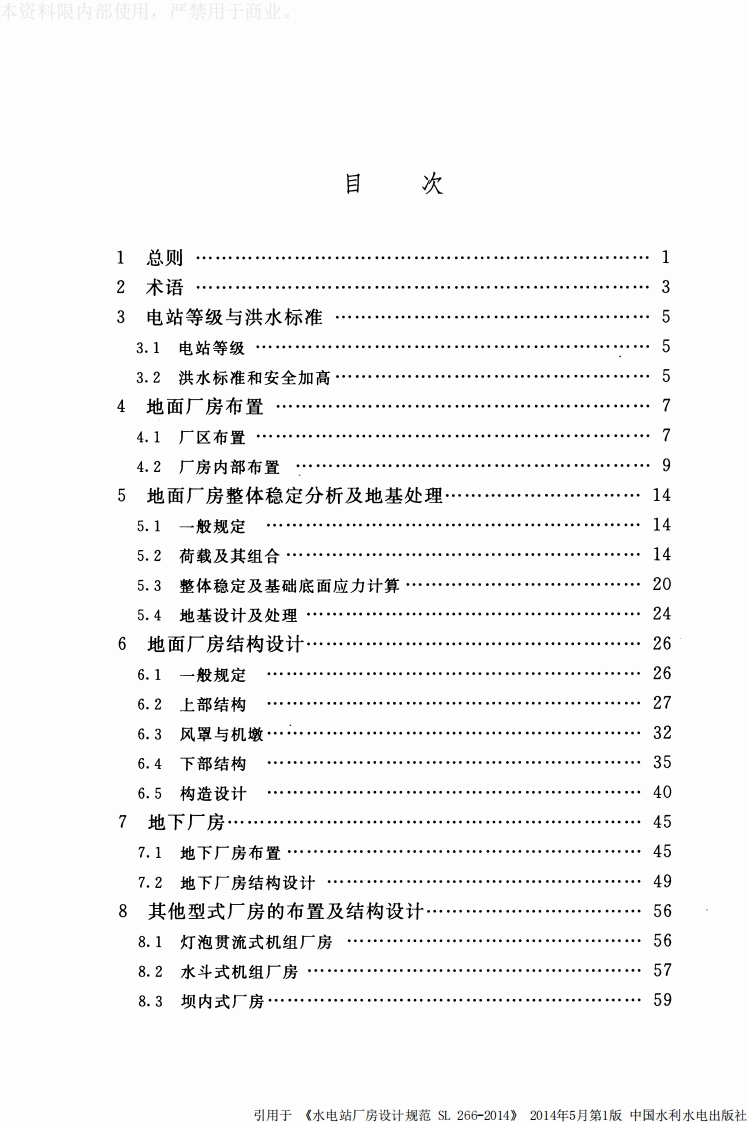 水电站厂房设计规范Designcodeforhydropowerhouse04-21发布2014-07-21实施348072@abc15天前发布关注私信9.44MB194页047水电站厂房设计规范Designcodeforhydropowerhouse04-21发布2014-07-21实施此内容为付费资源,请付费后查看¥13¥19黄金会员免费钻石会员免费立即购买您当前未登录!建议登陆后购买,可保存购买订单付费资源 第1页 / 共194页 第2页 / 共194页 第3页 / 共194页 第4页 / 共194页 第5页 / 共194页 试读已结束,还剩189页,您可下载完整版后进行离线阅读 THE END标准规范 文本预览 本资料限内部使用,严禁用于商业ICS27.140P59SL中华人民共和国水利行业标准SL266-2014替代SL266-2001水电站厂房设计规范Design code for hydropower house2014-04-21发布2014-07-21实施中华人民共和国水利部发布引用于《水电站厂房设计规范SL266-2014》2014年5月第1版中国水利水电出版社 查看更多 收起部分 喜欢就支持一下吧收藏
