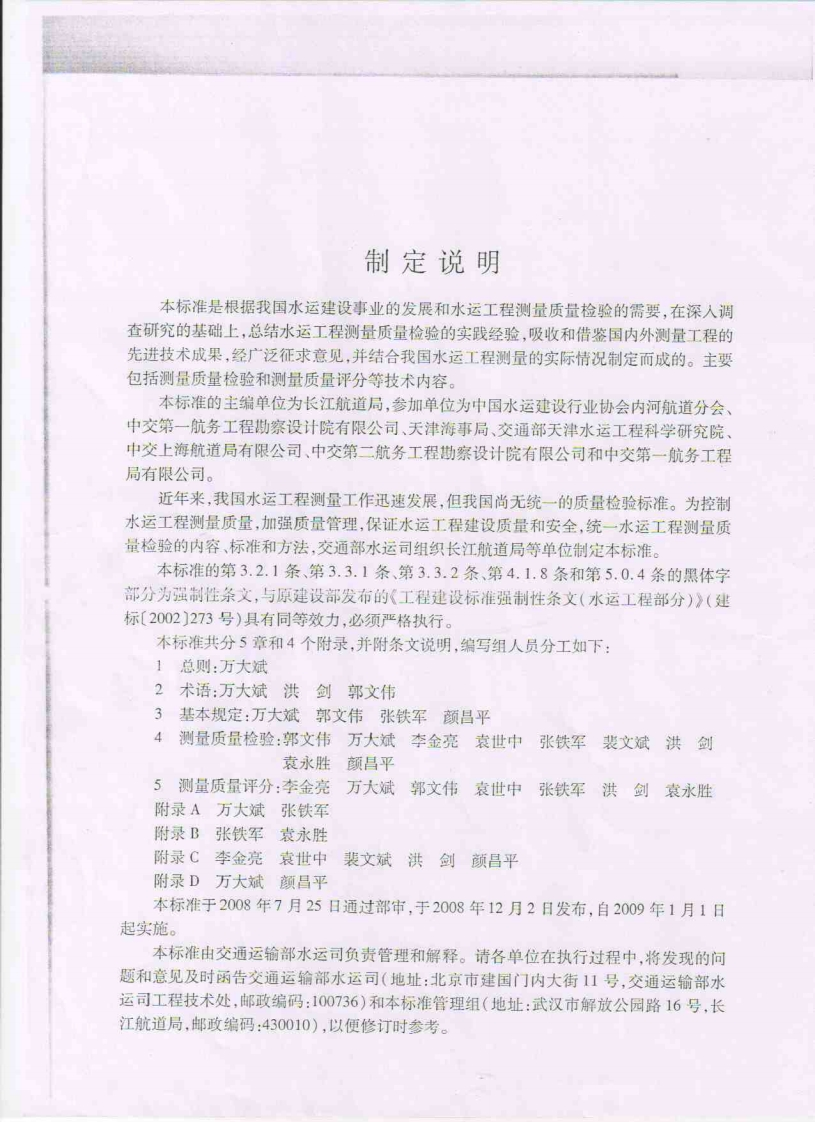 水运工程测量质量检验标准JTS258-2008主编单位_长江航道局批准单位_中华人民共和国交通运输部施行日期_2009年1月1日348072@abc15天前发布关注私信5.73MB66页029水运工程测量质量检验标准JTS258-2008主编单位_长江航道局批准单位_中华人民共和国交通运输部施行日期_2009年1月1日此内容为付费资源,请付费后查看¥13¥19黄金会员免费钻石会员免费立即购买您当前未登录!建议登陆后购买,可保存购买订单付费资源 第1页 / 共66页 第2页 / 共66页 第3页 / 共66页 第4页 / 共66页 第5页 / 共66页 试读已结束,还剩61页,您可下载完整版后进行离线阅读 THE END标准规范 文本预览 中华人民共和国行业标准水运工程测量质量检验标准JTS258-2008主编单位:长江航道局批准单位:中华人民共和国交通运输部施行日期:2009年1月1日人武交通出版社2008·北京 查看更多 收起部分 喜欢就支持一下吧收藏