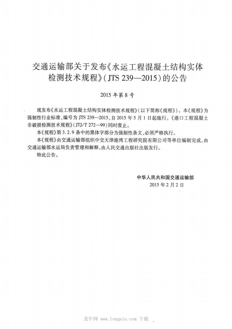 水运工程混凝土结构实体检测技术规程TechnicalSpecificationforSolidinspectionofConcreteStruinPortandWaterwayEngineering348072@abc15天前发布关注私信23.62MB102页026水运工程混凝土结构实体检测技术规程TechnicalSpecificationforSolidinspectionofConcreteStruinPortandWaterwayEngineering此内容为付费资源,请付费后查看¥13¥19黄金会员免费钻石会员免费立即购买您当前未登录!建议登陆后购买,可保存购买订单付费资源 第1页 / 共102页 第2页 / 共102页 第3页 / 共102页 第4页 / 共102页 第5页 / 共102页 试读已结束,还剩97页,您可下载完整版后进行离线阅读 THE END标准规范 文本预览 JTS中华人民共和国行业标准JTS239-2015水运工程混凝土结构实体检测技术规程Technical Specification for Solid Inspection of Concrete Structurein Port and Waterway Engineering2015-02-02发布2015-05-01实施中华人民共和国交通运输部发布 查看更多 收起部分 喜欢就支持一下吧收藏