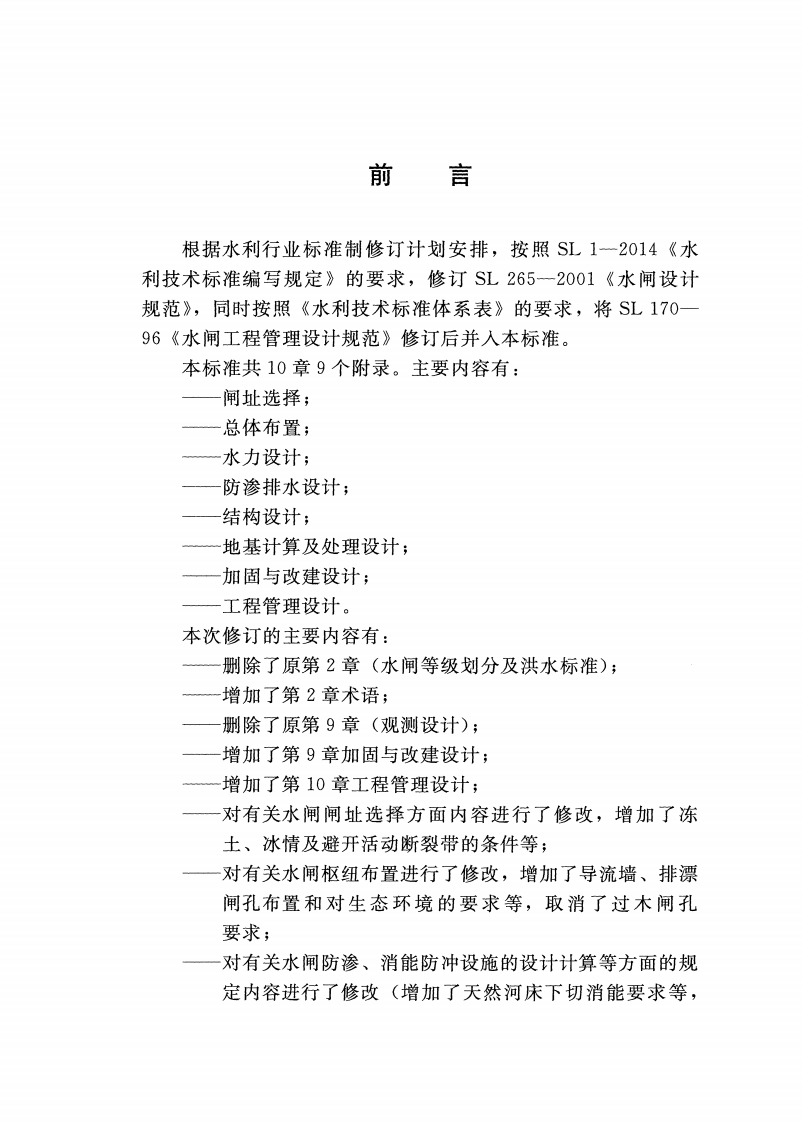 水闸设计规范Designspecificationsforsluices_1348072@abc15天前发布关注私信14.49MB261页028水闸设计规范Designspecificationsforsluices_1此内容为付费资源,请付费后查看¥13¥19黄金会员免费钻石会员免费立即购买您当前未登录!建议登陆后购买,可保存购买订单付费资源 第1页 / 共261页 第2页 / 共261页 第3页 / 共261页 第4页 / 共261页 第5页 / 共261页 试读已结束,还剩256页,您可下载完整版后进行离线阅读 THE END标准规范 文本预览 ICS91.080P55SL中华人民共和国水利行业标准SL265-2016替代SL265—2001SL170-96水闸设计规范Design specifications for sluices2016-11-30发布2017-02-28实施中华人民共和国水利部发布 查看更多 收起部分 喜欢就支持一下吧收藏