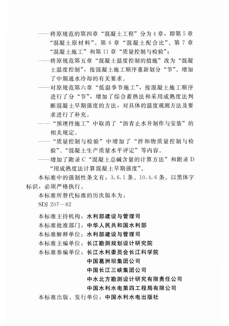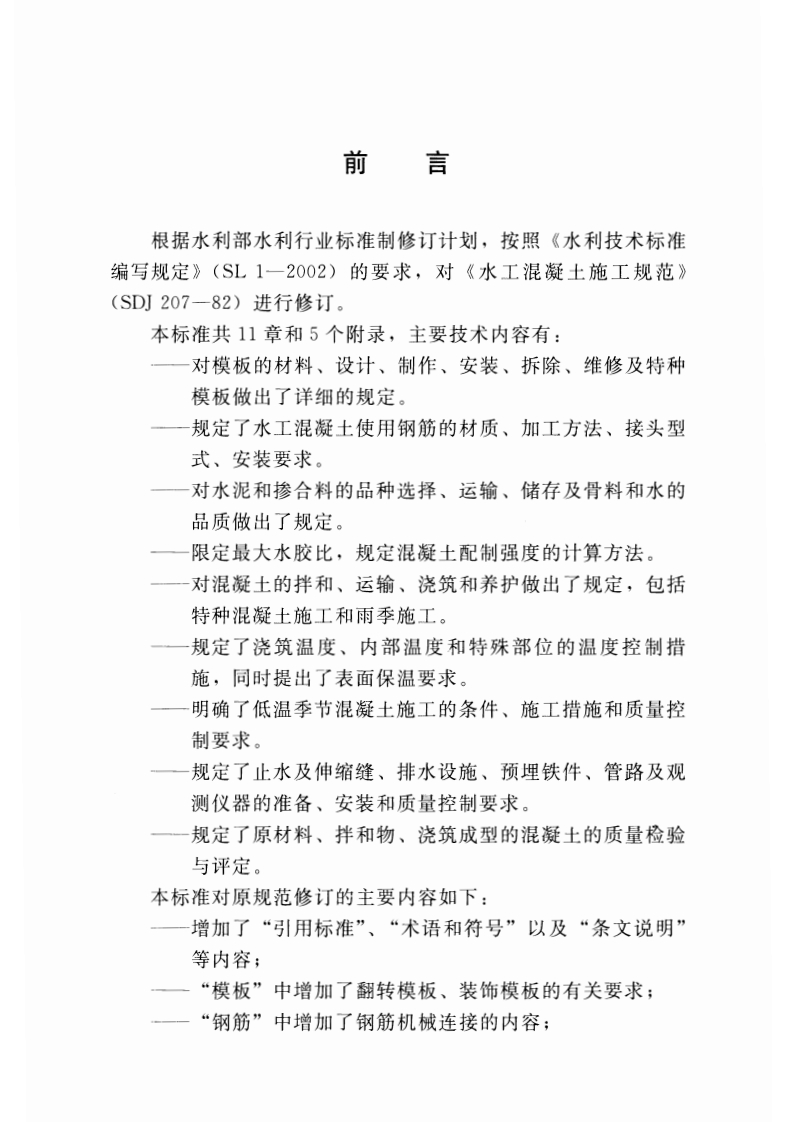 泥凝工他上规汇pecificationsforhydraulicconcreteconstruction-10-27发布2015-01-27实施348072@abc15天前发布关注私信5.59MB185页046泥凝工他上规汇pecificationsforhydraulicconcreteconstruction-10-27发布2015-01-27实施此内容为付费资源,请付费后查看¥13¥19黄金会员免费钻石会员免费立即购买您当前未登录!建议登陆后购买,可保存购买订单付费资源 第1页 / 共185页 第2页 / 共185页 第3页 / 共185页 第4页 / 共185页 第5页 / 共185页 试读已结束,还剩180页,您可下载完整版后进行离线阅读 THE END标准规范 文本预览 ICS93.020P25SL中华人民共和国水利行业标准SL677-2014替代SDJ207—82水工混凝土施工规范Specifications for hydraulic concrete construction2014-10-27发布2015-01-27实施中华人民共和国水利部发布 查看更多 收起部分 喜欢就支持一下吧收藏