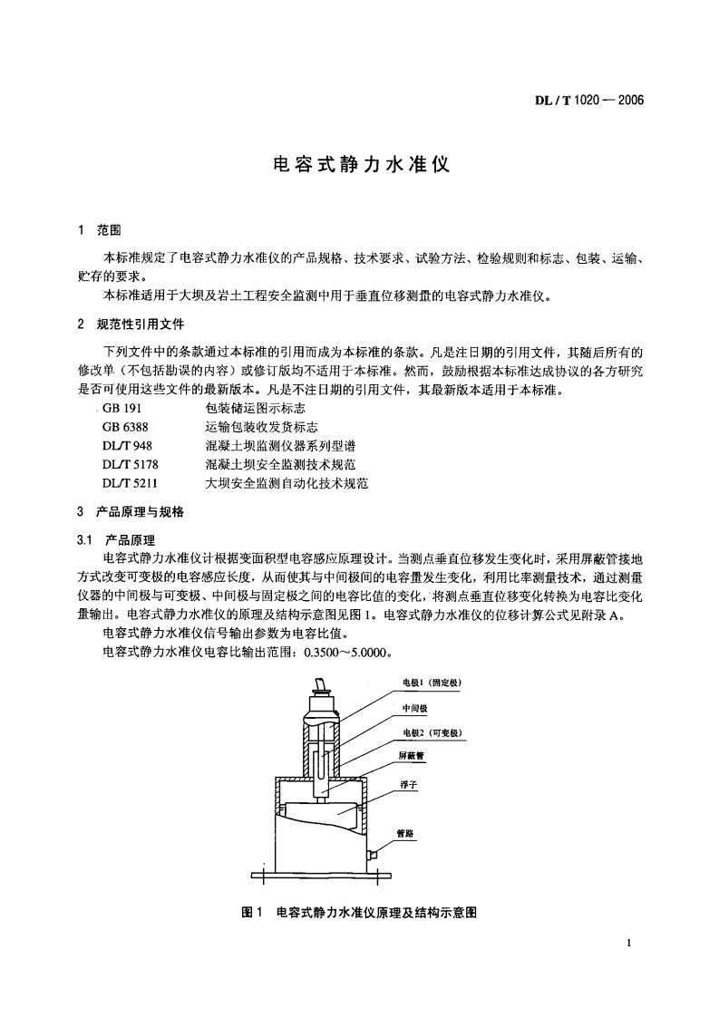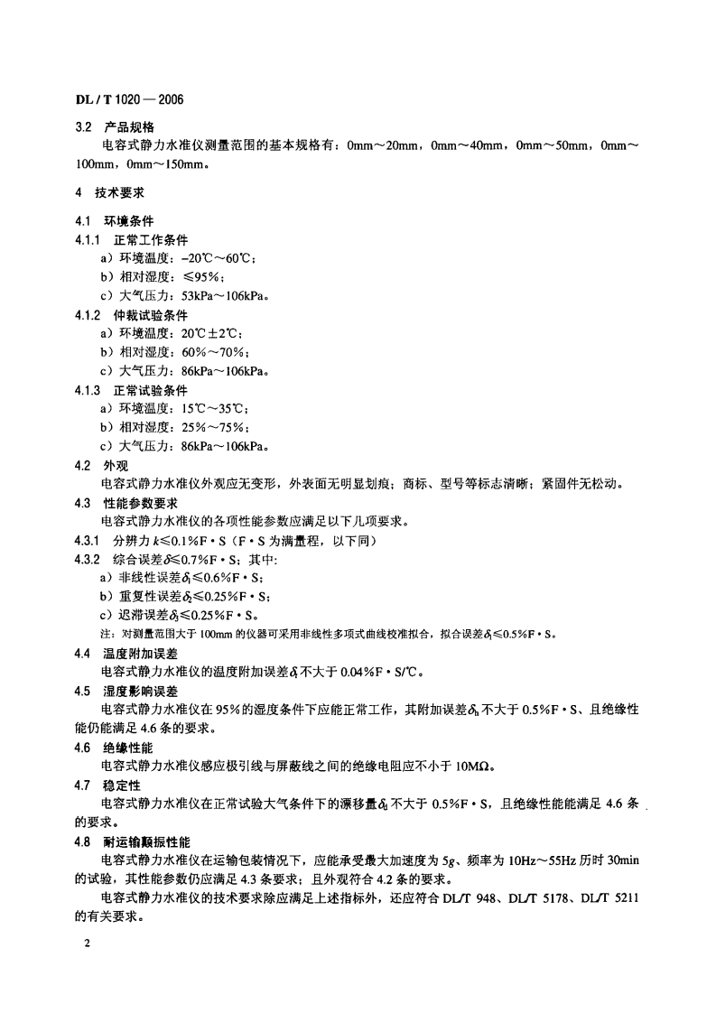 电容式静力水准仪Capacitancelevelingtransducer348072@abc13天前发布关注私信0.26MB10页026电容式静力水准仪Capacitancelevelingtransducer此内容为付费资源,请付费后查看¥13¥19黄金会员免费钻石会员免费立即购买您当前未登录!建议登陆后购买,可保存购买订单付费资源 第1页 / 共10页 第2页 / 共10页 第3页 / 共10页 第4页 / 共10页 第5页 / 共10页 试读已结束,还剩5页,您可下载完整版后进行离线阅读 THE END标准规范 文本预览 ICS27.120.20N74备案号:18588-2006D中华人民共和国电力行业标准DL/T1020一2006电容式静力水准仪Capacitance leveling transducer2006-09-14发布2007-03-01实施中华人民共和国国家发展和改革委员会发布 查看更多 收起部分 喜欢就支持一下吧收藏