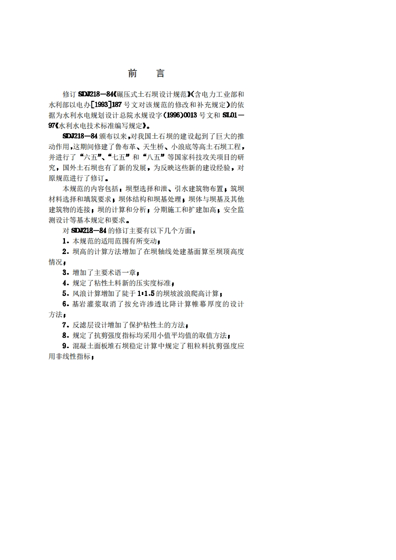 碾压式土石坝设计规范Designcodeforrolledearth-rockfilldams348072@abc12天前发布关注私信3.11MB85页023碾压式土石坝设计规范Designcodeforrolledearth-rockfilldams此内容为付费资源,请付费后查看¥13¥19黄金会员免费钻石会员免费立即购买您当前未登录!建议登陆后购买,可保存购买订单付费资源 第1页 / 共85页 第2页 / 共85页 第3页 / 共85页 第4页 / 共85页 第5页 / 共85页 试读已结束,还剩80页,您可下载完整版后进行离线阅读 THE END标准规范 文本预览 UDCSL中华人民共和国行业标准PSL274一2001碾压式土石坝设计规范Design code for rolled earth-rock fill dams2002-01-28发布2002-0301实施中华人民共和国水利部发布 查看更多 收起部分 喜欢就支持一下吧收藏