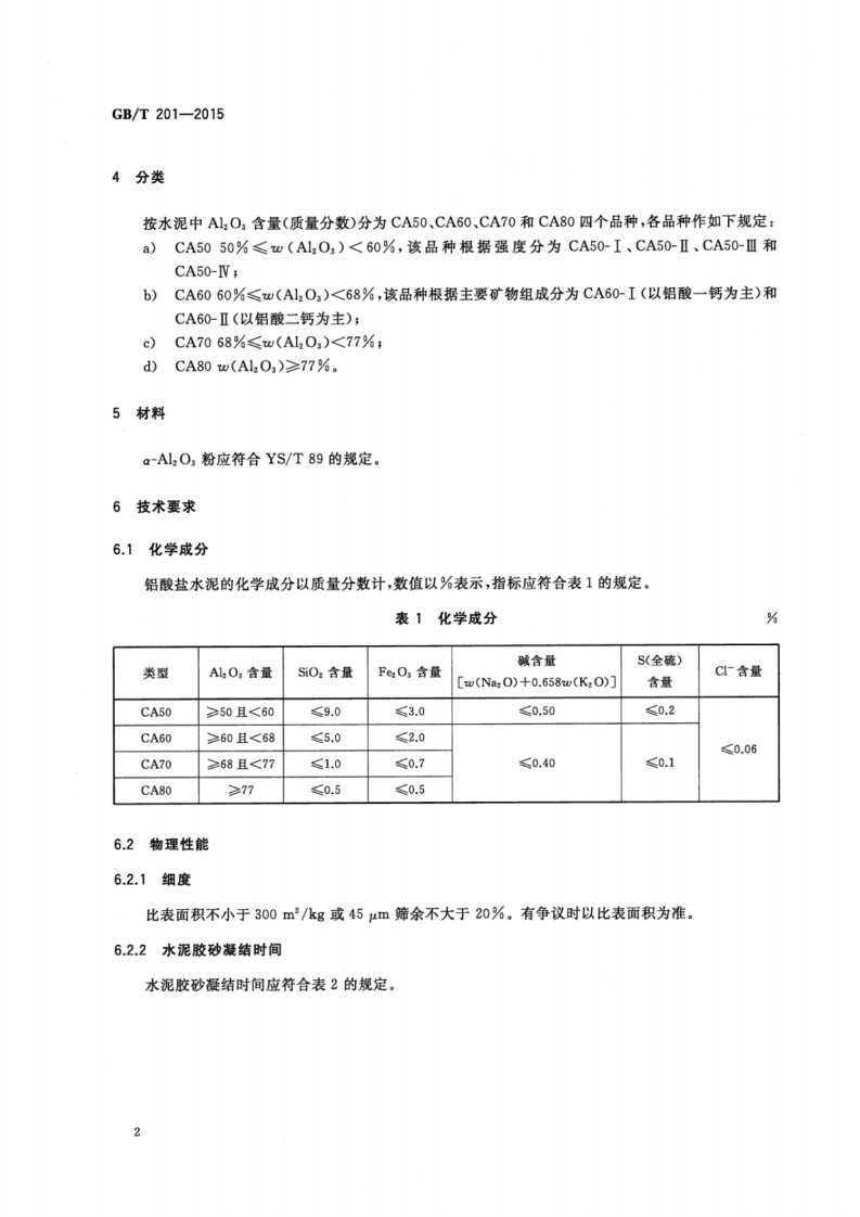 铝酸盐水泥Calciumaluminatecement348072@abc11天前发布关注私信3.27MB11页021铝酸盐水泥Calciumaluminatecement此内容为付费资源,请付费后查看¥13¥19黄金会员免费钻石会员免费立即购买您当前未登录!建议登陆后购买,可保存购买订单付费资源 第1页 / 共11页 第2页 / 共11页 第3页 / 共11页 第4页 / 共11页 第5页 / 共11页 试读已结束,还剩6页,您可下载完整版后进行离线阅读 THE END标准规范 文本预览 ICS91.100.10011GB中华人民共和国国家标准GB/T201-2015代替GB201一2000铝酸盐水泥Calcium aluminate cement2015-06-02发布2016-05-01实施中华人民共和国国家质量监督检验检疫总局中国国家标准化管理委员会发布 查看更多 收起部分 喜欢就支持一下吧收藏