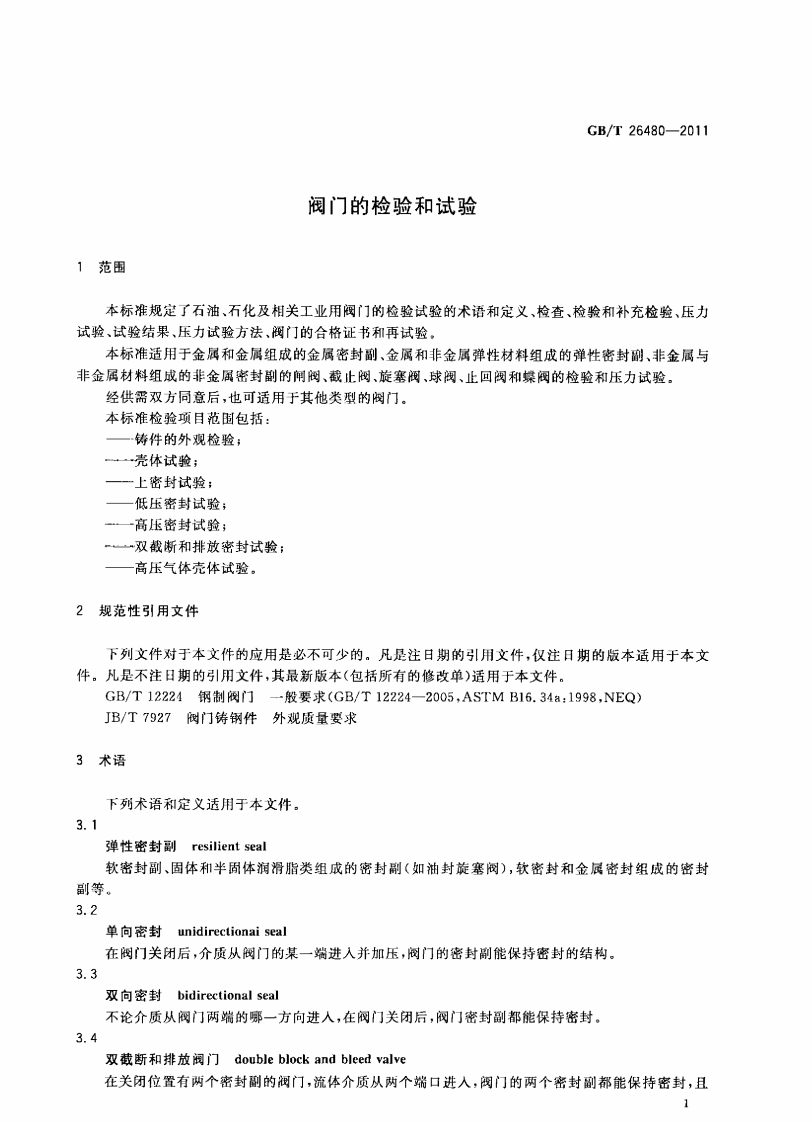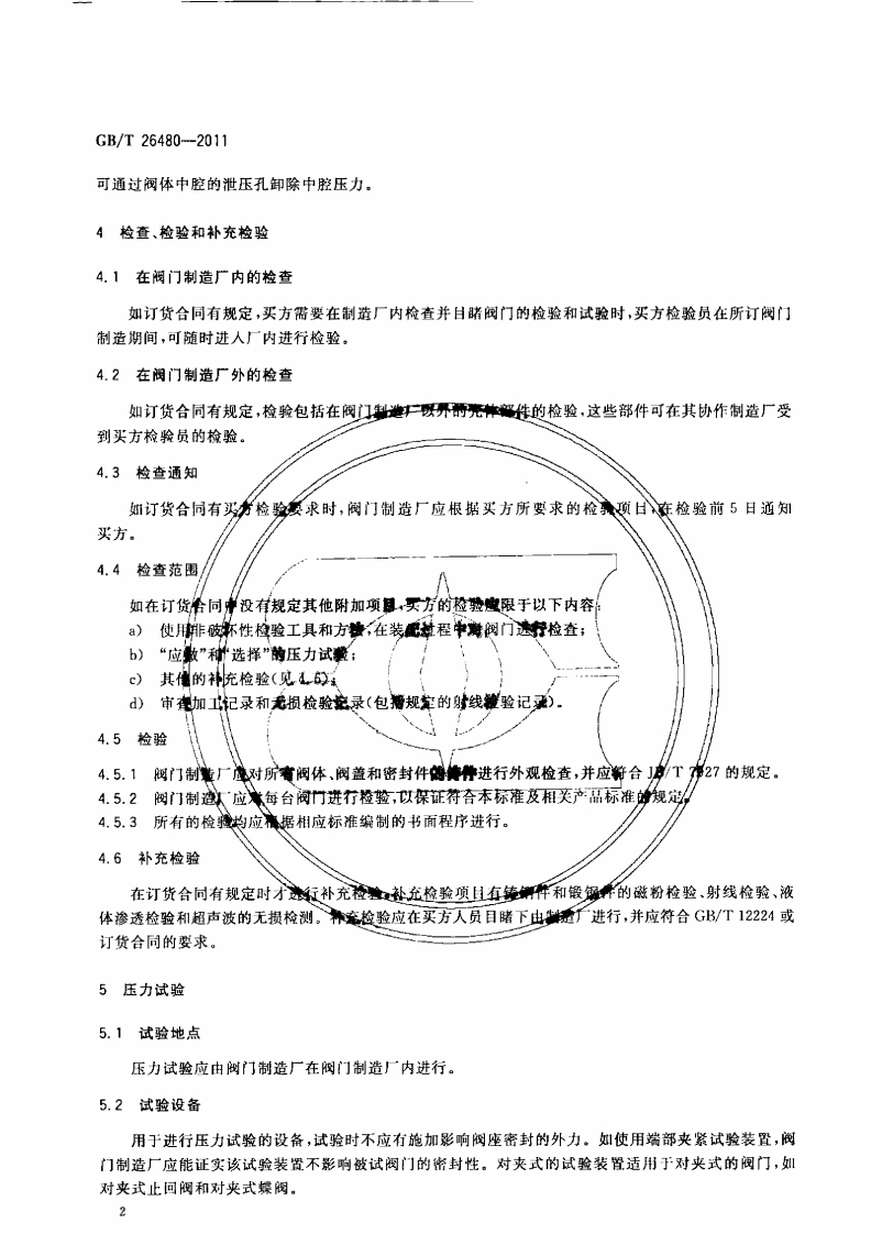 阀门的检验和试验Valveinspectionandtesting348072@abc11天前发布关注私信0.35MB13页022阀门的检验和试验Valveinspectionandtesting此内容为付费资源,请付费后查看¥13¥19黄金会员免费钻石会员免费立即购买您当前未登录!建议登陆后购买,可保存购买订单付费资源 第1页 / 共13页 第2页 / 共13页 第3页 / 共13页 第4页 / 共13页 第5页 / 共13页 试读已结束,还剩8页,您可下载完整版后进行离线阅读 THE END标准规范 文本预览 1Cs23.060.01J16中华人民共和国国家标准GB/T26480-2011阀门的检验和试验Valve inspection and testing2011-05-12发布2011-10-01实施中华人民共和国国家质量监督检验检疫总局中国国家标准化管理委员会发布数码商负 查看更多 收起部分 喜欢就支持一下吧收藏