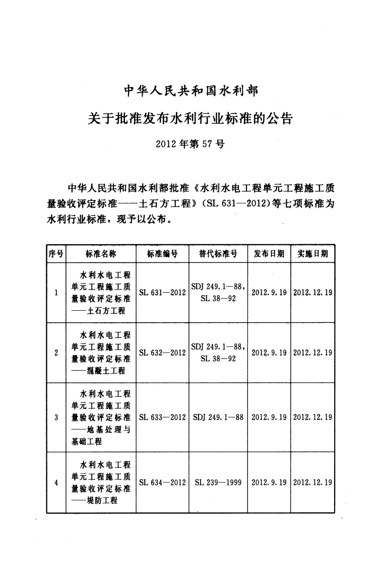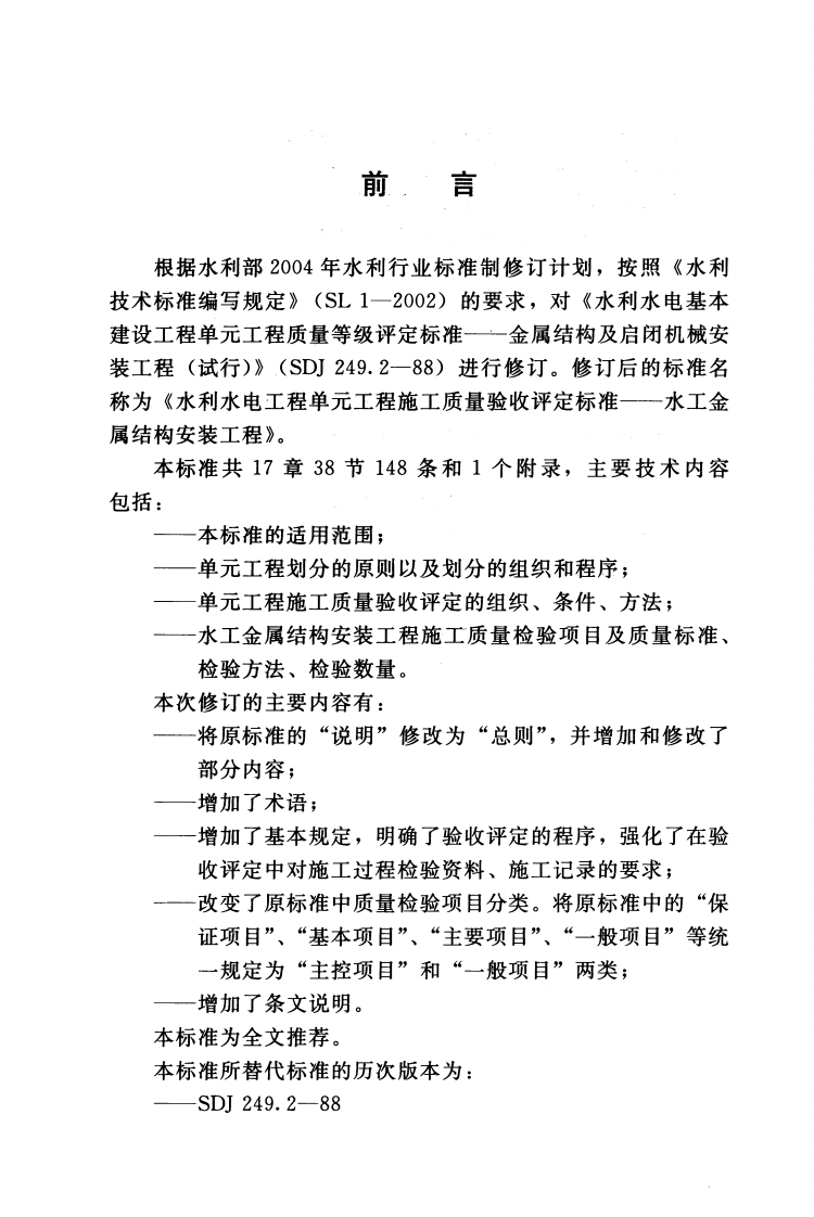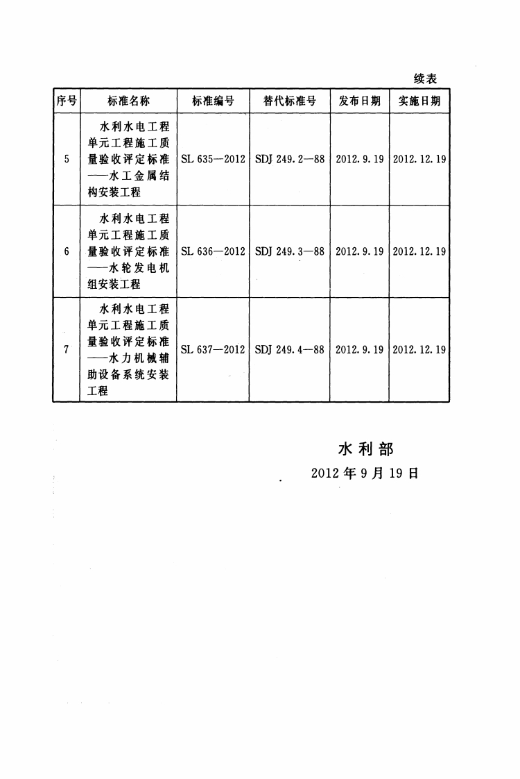 ICS27.140P55SL中华人民共和国水利行业标准SL635-2012替代SDJ249.2一88水利水电工程单元工程施工质量验收评定标准一水工金属结构安装工程Inspection and assessment standard for separated itemproject construction quality of water conservancyand hydroelectric engineering-Installation of metal structures2012-09-19发布2012-12-19实施中华人民共和国水利部发布
